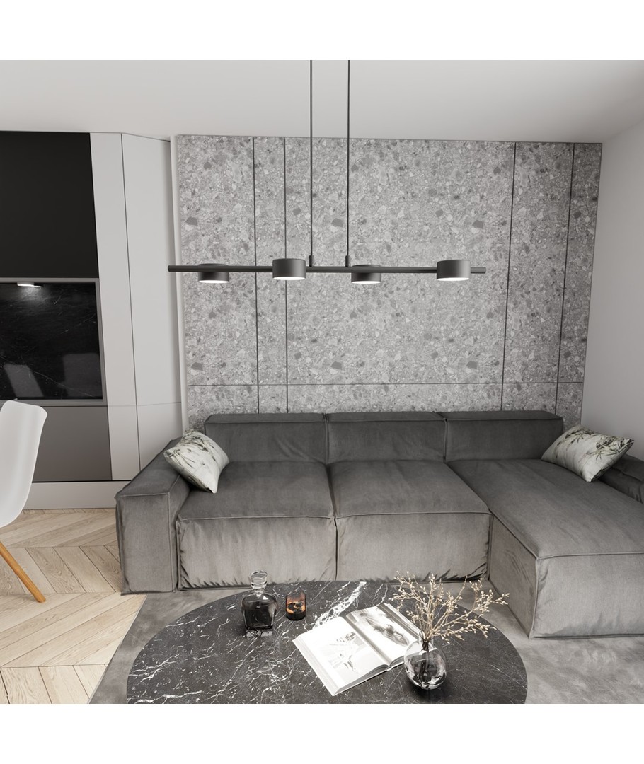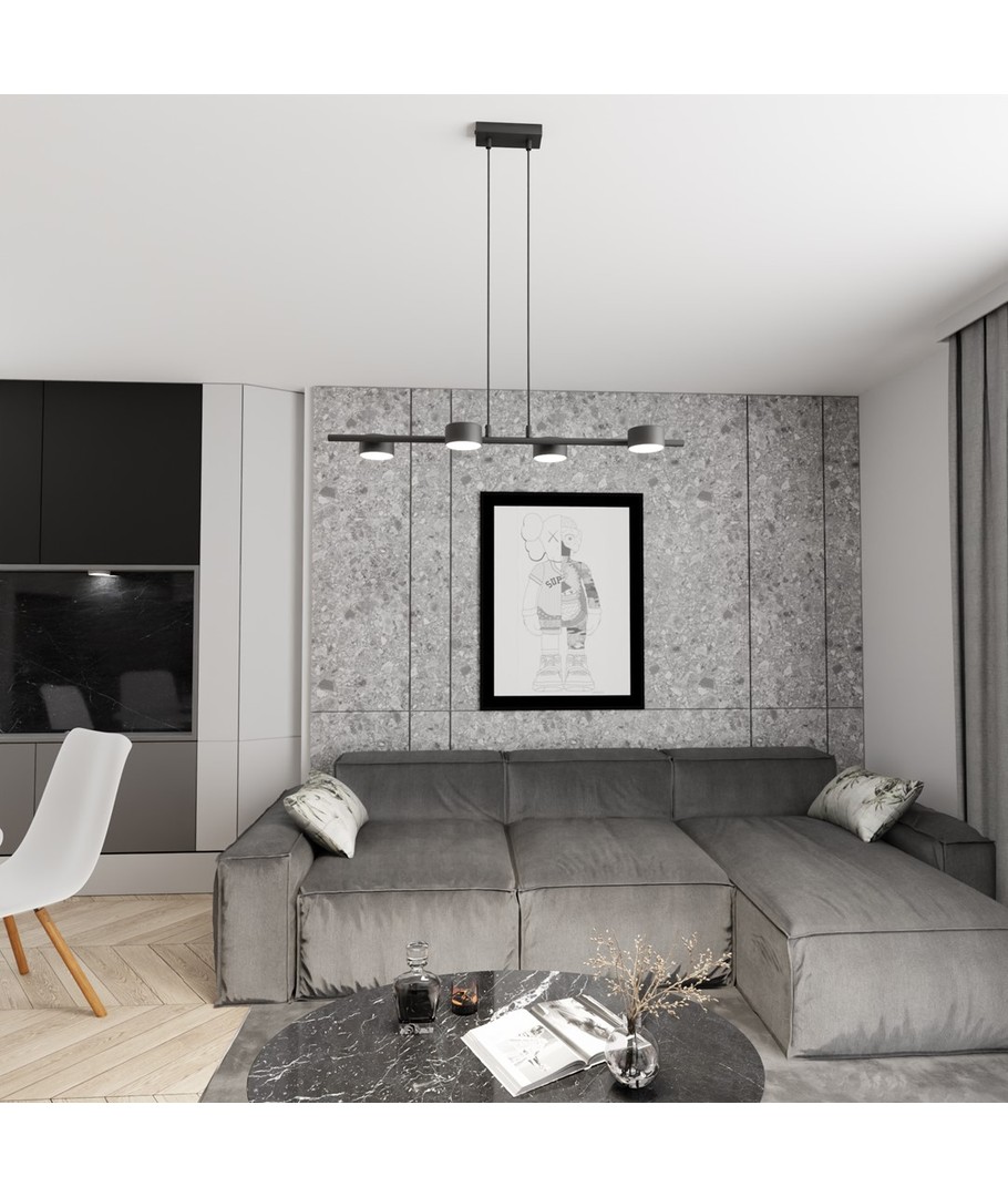 Sora 4 Sort pendellampe er det ideelle valg for dem som verdsetter minimalistisk design blandet med moderne eleganse. Denne lampen tilbyr en slank, horisontal stang med en matt sort finish, som enkelt kan integreres i forskjellige innredningsstiler. Dens justerbare høyde gjør det mulig å tilpasse belysningen etter dine personlige preferanser, noe som gjør den perfekt for både spisestuen, kjøkkenet eller kontoret. Sora 4 fungerer ikke bare som en belysningsløsning, men også som en stilfull dekorativ gjenstand som øyeblikkelig løfter ethvert interiør.