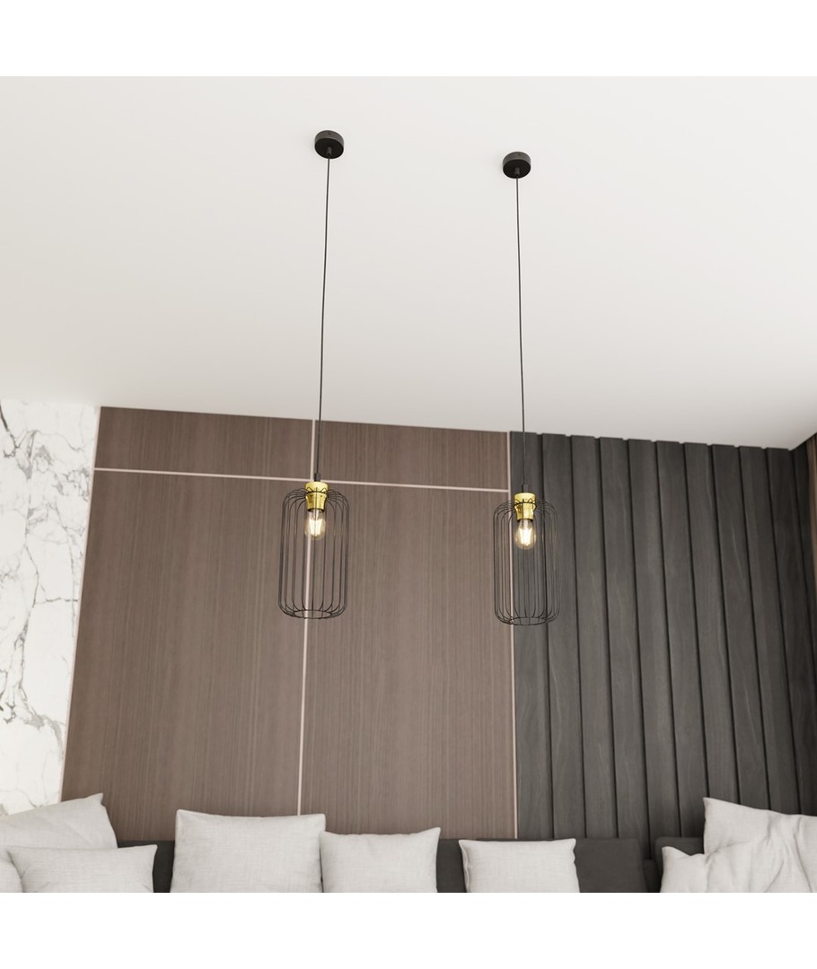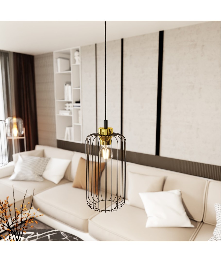 Vander 1 pendellampe er en utsøkt fusjon av tak- og industristil, som med sitt unike design bringer et moderne og røft uttrykk inn i ditt hjem. Denne pendellampen, fremstilt av holdbart pulverlakkert stål, byr på fine wireskjermer som skaper fascinerende belysningseffekter og fremhever lampens enkle, men karakterfulle estetikk. Vander-lampen er en perfekt match til både stue, spisestue, kjøkken og kommersielle lokaler, hvor den tilfører en ekstra dimensjon av originalitet og moderne stil. Med sin stilrene kombinasjon av svart og gull, er denne lampen en elegant tillegg til enhver moderne innredning.