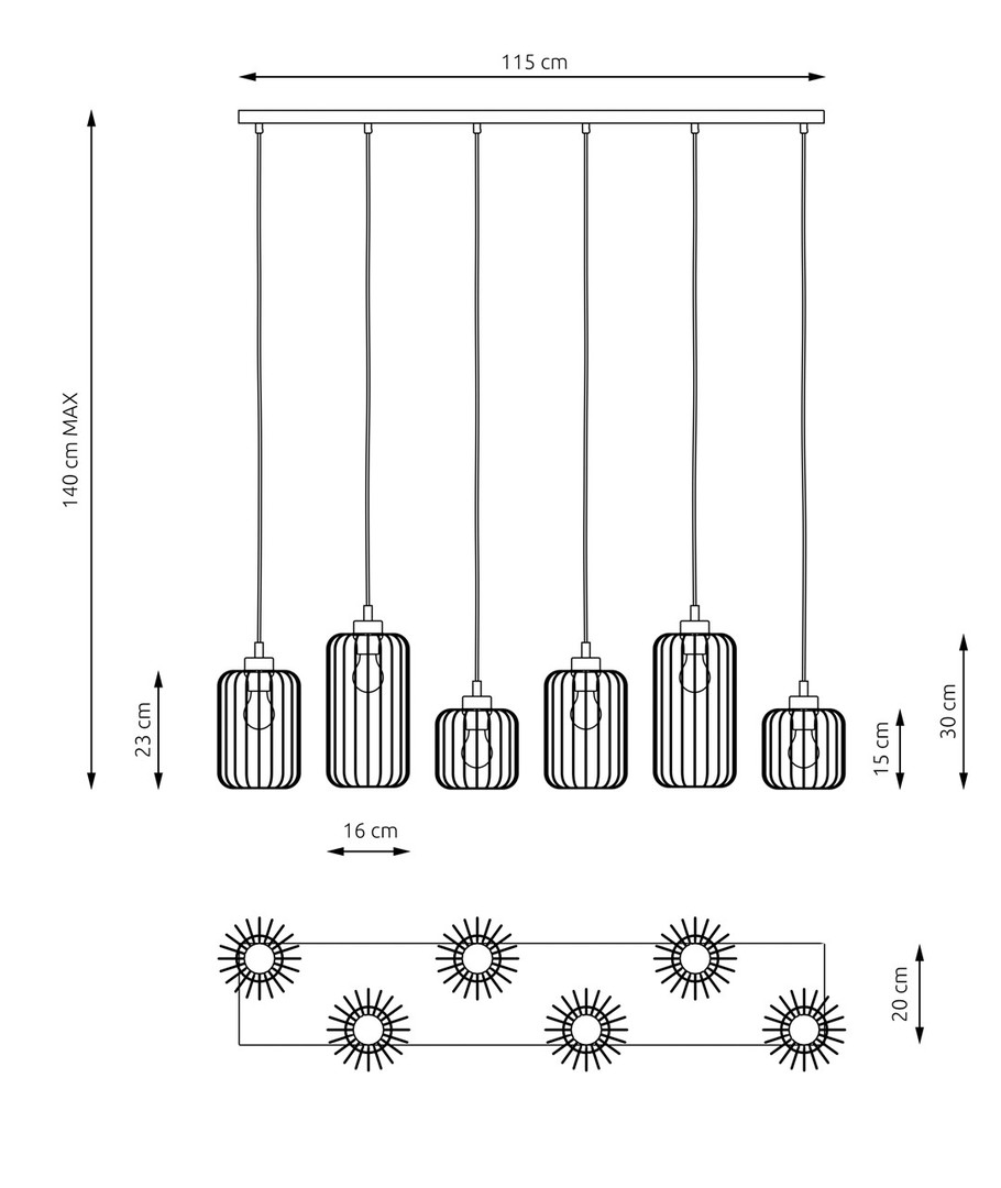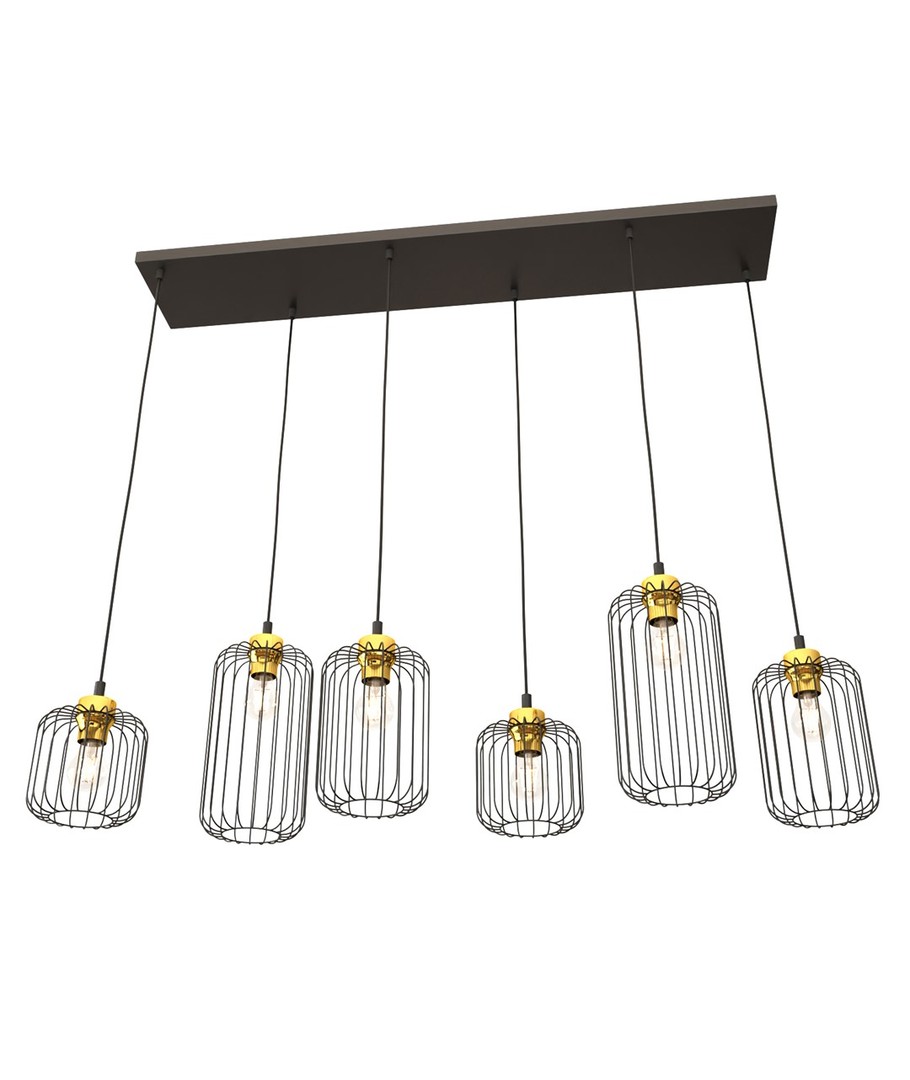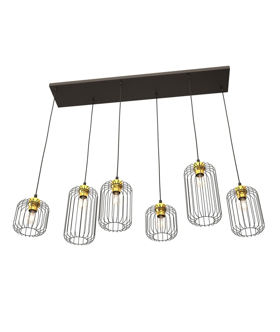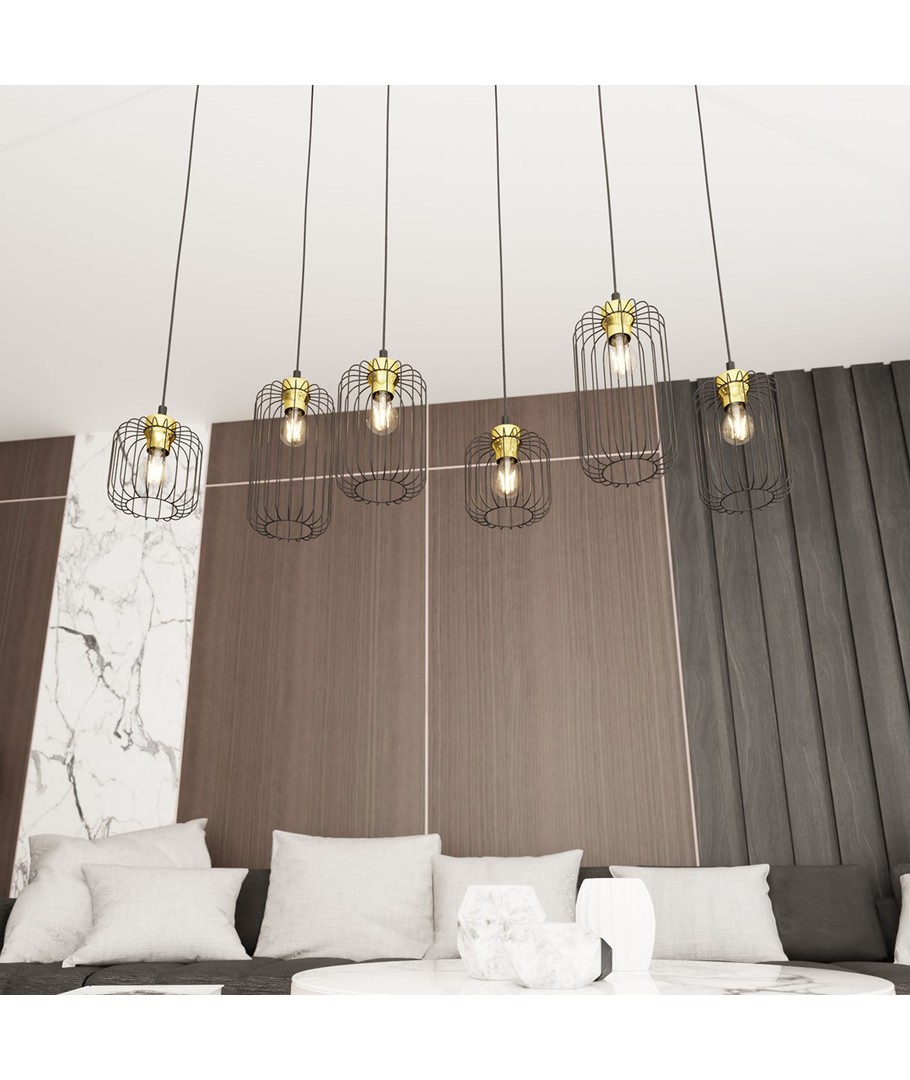 Vander 6 Sort/Gull pendellampe er det perfekte valg for deg som ønsker å legge til en kombinasjon av loft- og industriell stil til ditt hjem eller næringslokale. Lampen er laget av holdbart, pulverlakkert stål, som ikke bare sikrer lang levetid, men også et elegant uttrykk. De unike wireskjermene skaper fascinerende lyseffekter som fremhever lampens rå karakter. Denne lampen passer ideelt til stuen, spisestuen, kjøkkenet eller kommersielle rom og tilfører nytenkning og moderne design til enhver innredning.