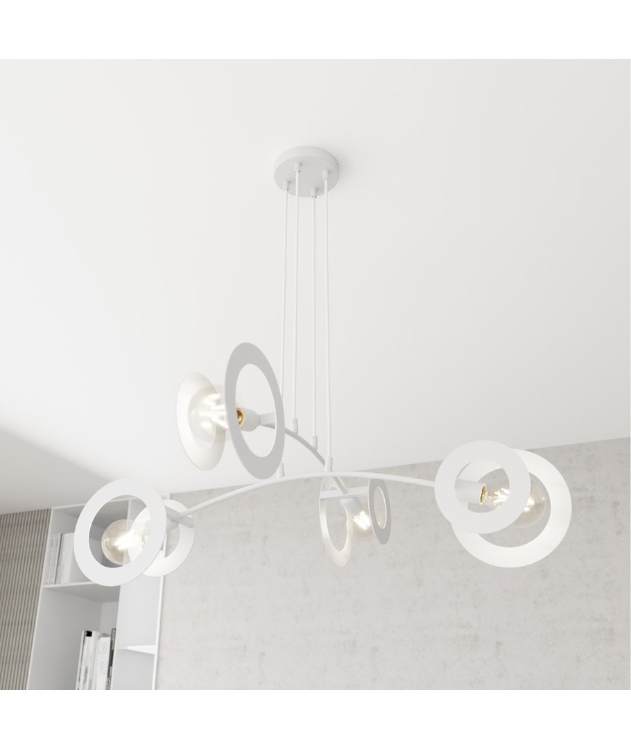 Euforia 4 Hvit pendellampe er innbegrepet av moderne design med sin kombinasjon av minimalistisk estetikk og geometriske former. Denne lampen er fremstilt av metall, noe som gir den et elegant og holdbart uttrykk. Dens unike form fanger øyet og tilfører personlighet til ethvert rom. Med sin imponerende lysfordeling er den ideell for stuer, spisestuer eller kontorområder, hvor den skaper en behagelig atmosfære. Euforia er det perfekte valget for de som verdsetter originale og stilfulle løsninger.