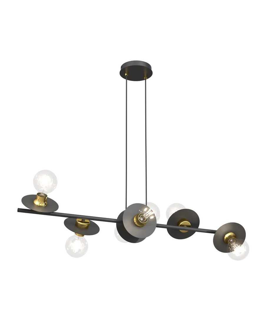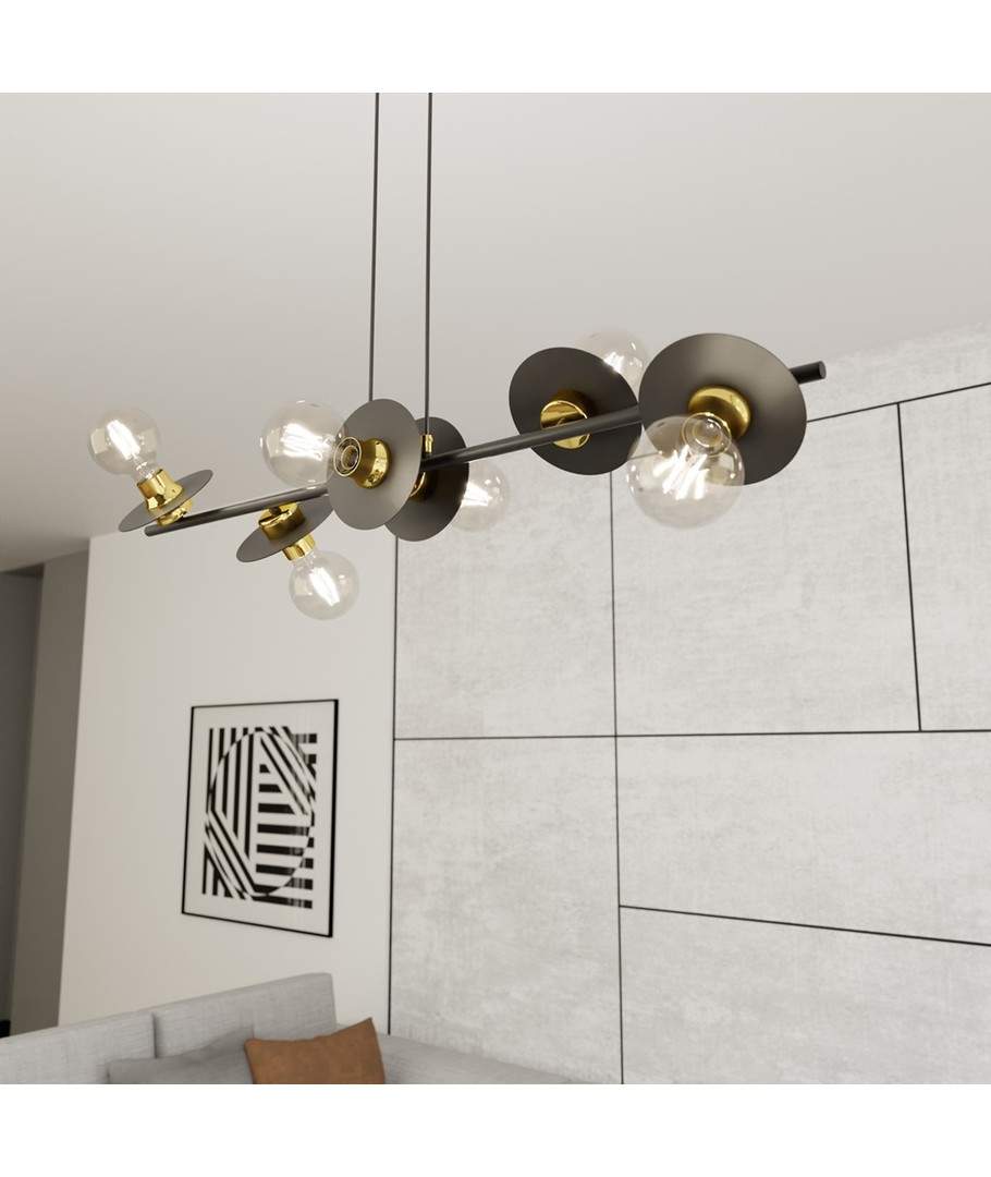 Med sitt moderne design og evne til å passe inn i enhver stilsetting, gir denne vakre pendellampen en perfekt lyssetting til stuer, spiseområder eller entréer. Kombinasjonen av den svarte og gylne fargepaletten gir en elegant kontrast som tilfører rommet en følelse av luksus.