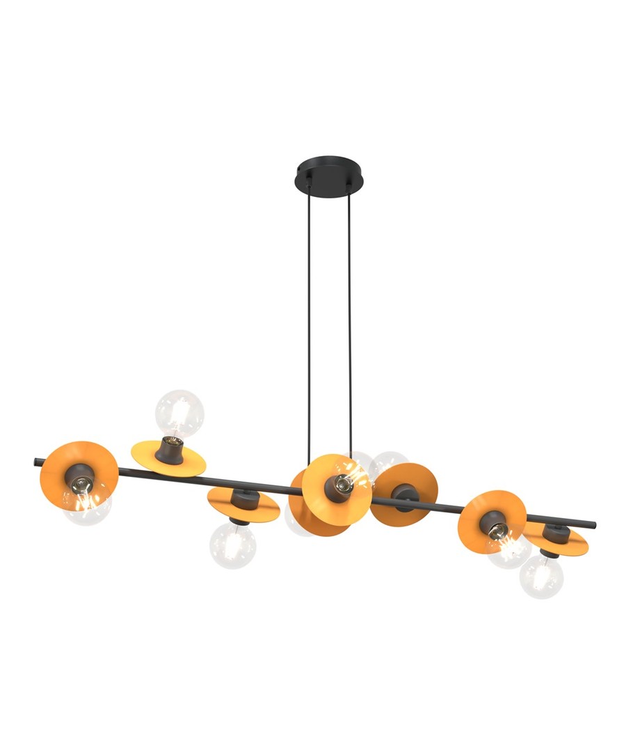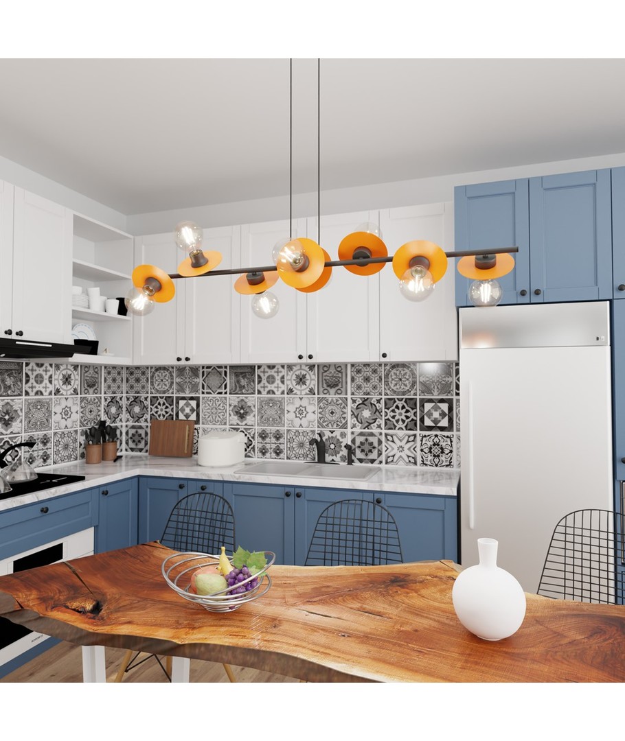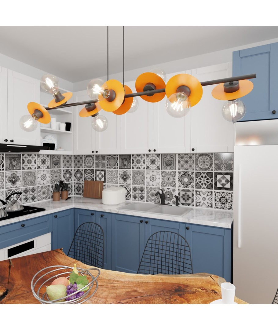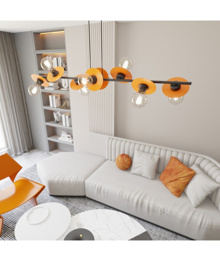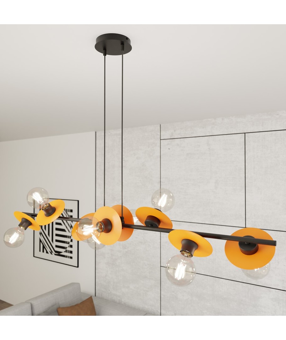 Skap et blikkfang i hjemmet ditt med denne stilige pendellampen, som kombinerer sort og oransje for et moderne og iøynefallende design. Med sitt enkle, men elegante utseende, vil denne lampen være et perfekt tillegg over spisebordet, i stuen eller på kontoret.