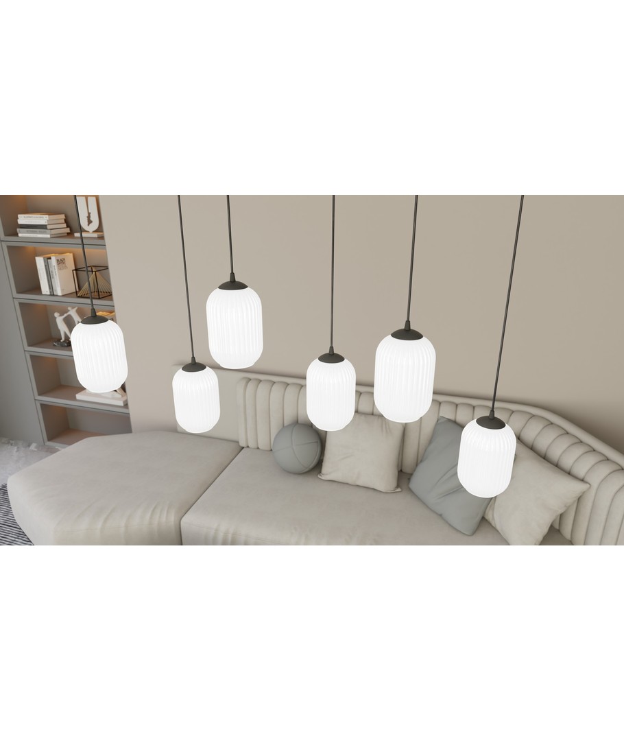 Verdi 3 Sort/Opal pendellampe er en enestående belysningsløsning som kombinerer stil og funksjonalitet. Med sin karakteristiske, uregelmessige form tilfører lampen et unikt preg til ethvert rom og skaper en koselig atmosfære. Den myke, diffuse belysningen er perfekt for moderne og eklektiske interiører, noe som gjør den ideell for stuer, spiserom eller kommersielle områder.