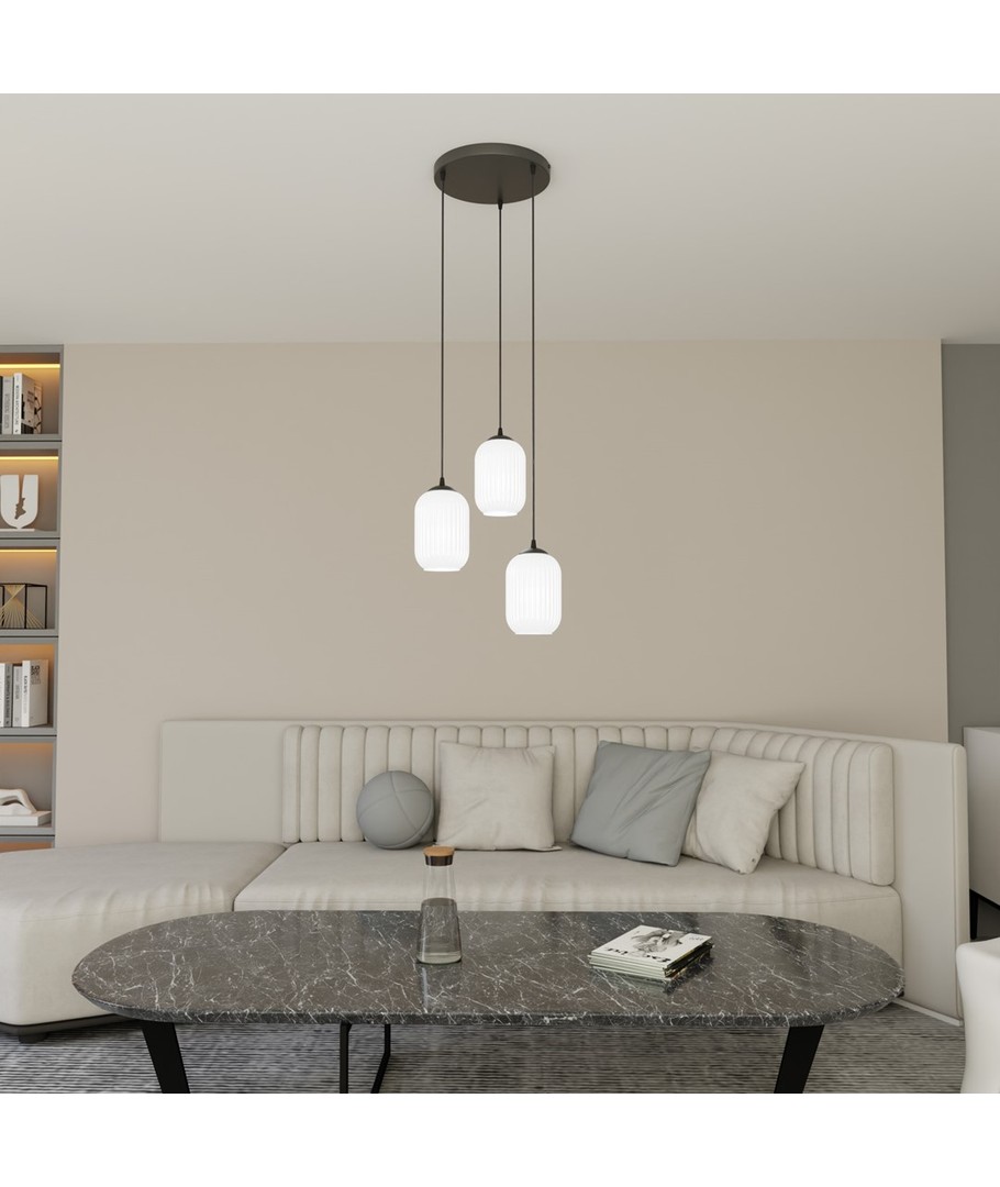Designet for å gi en jevn og varm belysning, denne pendellampen passer ideelt over spisebordet, på kontoret eller i stuen. Den opale skjermen i sort gir et mykt og behagelig lys samtidig som den tilføyer et snev av luksus til ethvert rom.