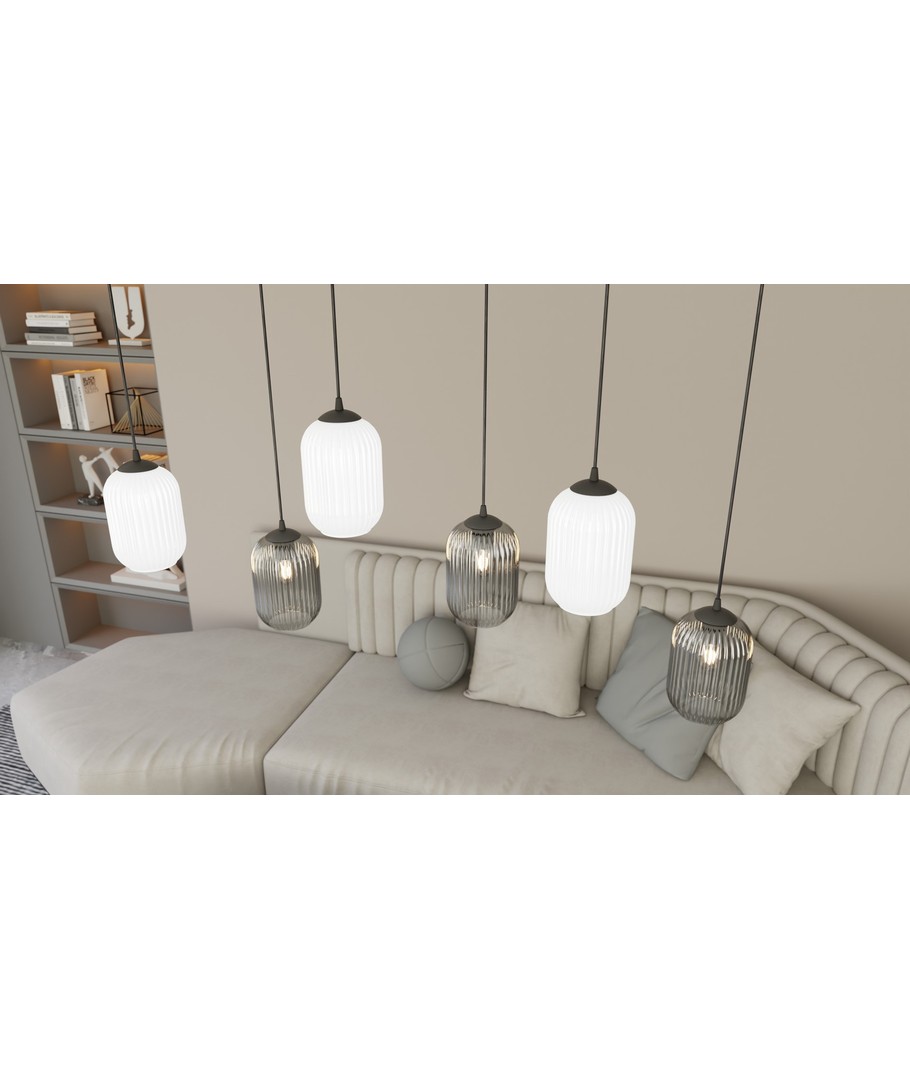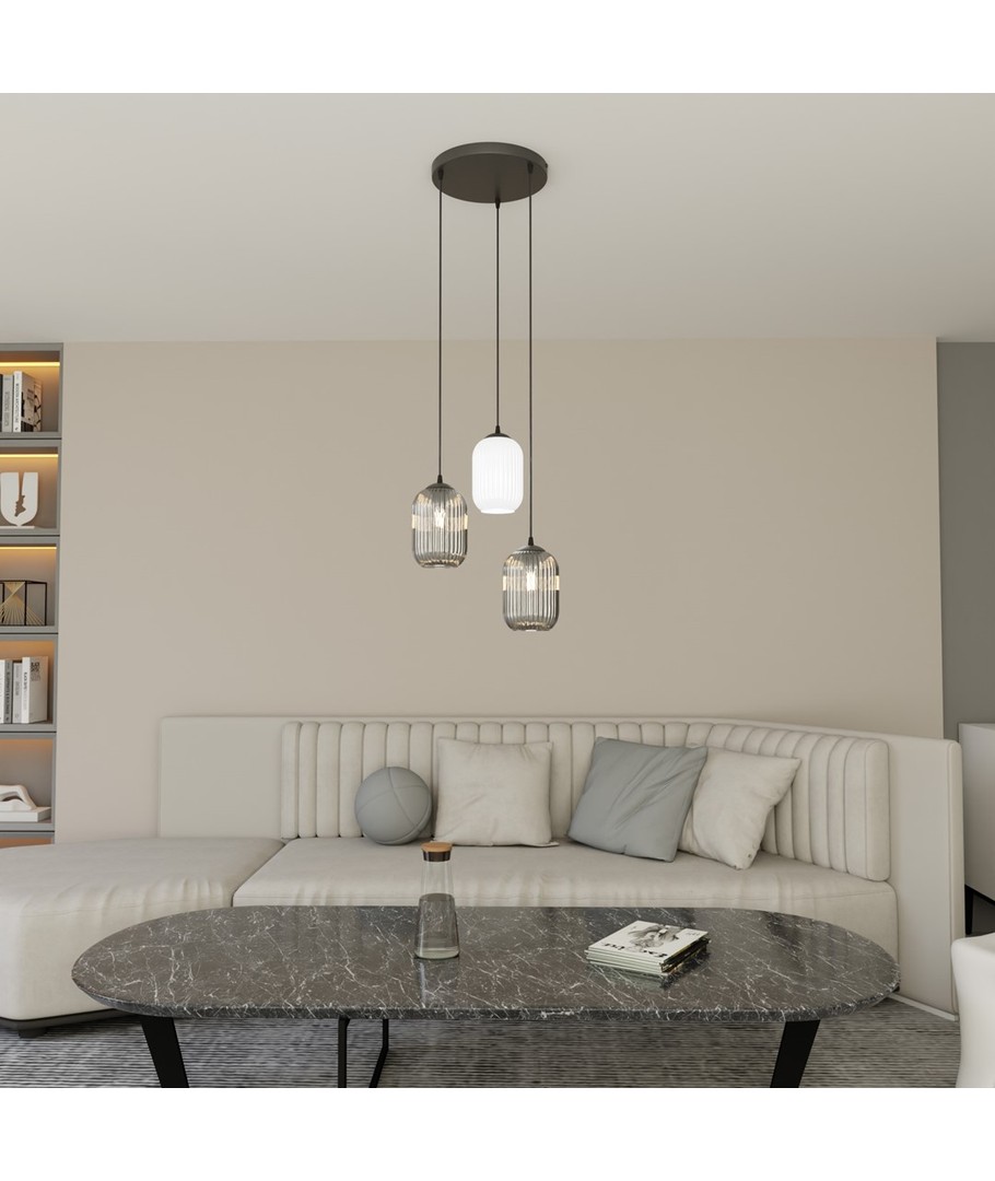 Verdi 3 Sort Prem Mix pendellampen er et unikt belysningselement som skiller seg ut med sin karakteristiske, krukkeformede skjerm. Dette originale designet tilfører karakter til ethvert interiør ved å introdusere en markant stil og en hyggelig atmosfære. Lampen er perfekt for moderne og eklektiske innredninger og utstråler et mykt, diffust lys, noe som gjør den ideell for stuer, spisestuer eller kommersielle rom. For de som søker unike og kreative belysningsløsninger, er Verdi lampen et fremragende valg.