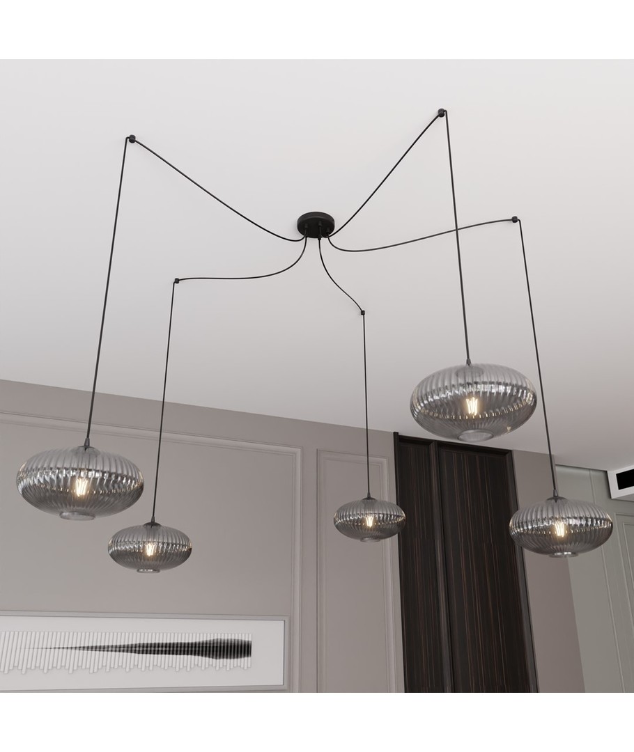 Opplev eleganse og funksjonalitet med Origo 5 Sort/Grafit pendellampe. Med sitt moderne design og de imponerende, ekspansive armene tilbyr denne lampen en enestående estetikk som skaper en varm og innbydende atmosfære i ethvert rom.