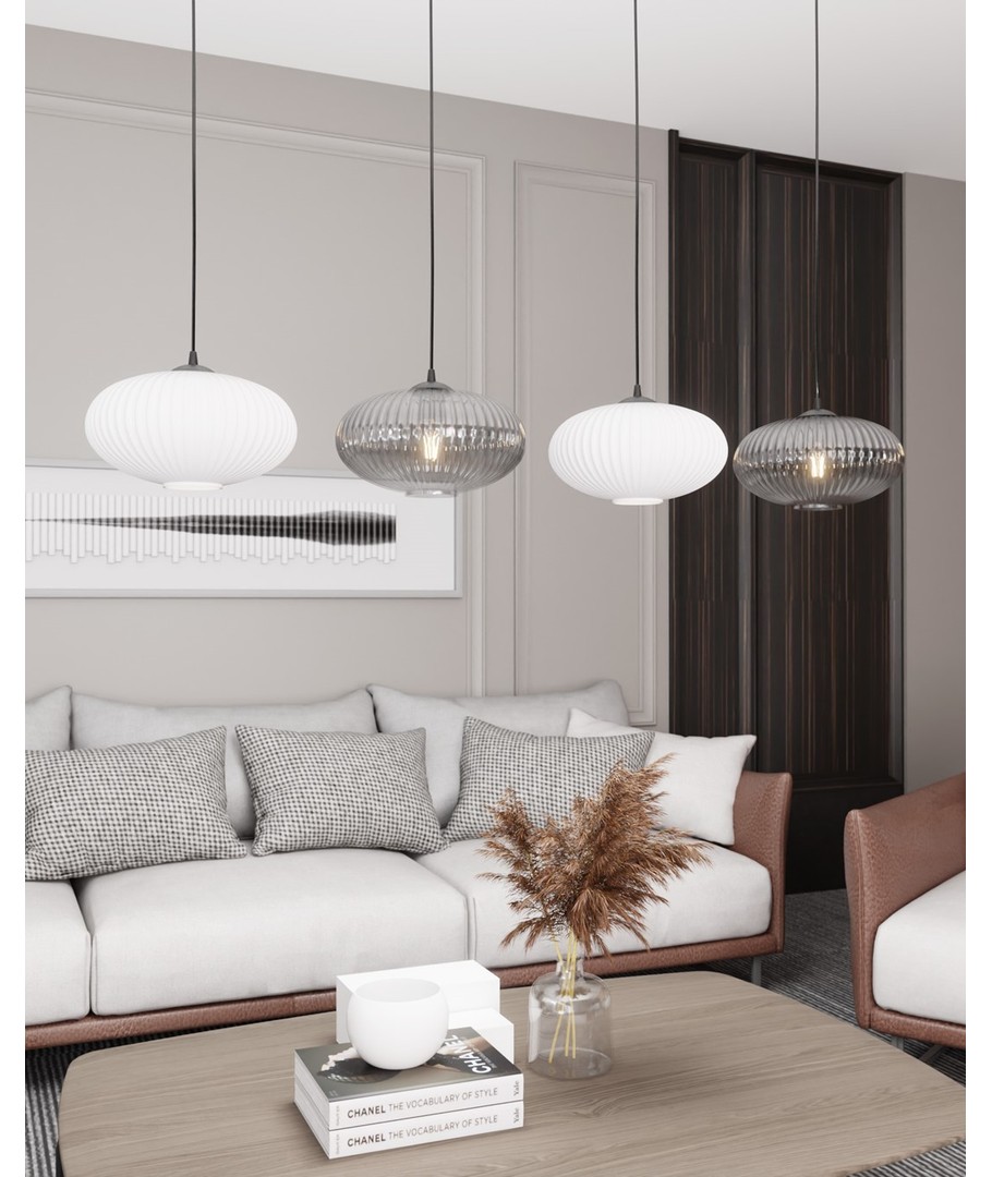 Coco 4 Sort Mix pendellampe er en moderne belysningsløsning, som vakkert kombinerer eleganse og funksjonalitet. Med sine stilrene glasskjermene skaper pendellampen en varm og innbydende atmosfære, som tilfører rommet en lett og subtil sjarm. Denne pendellampe er perfekt for både stue og spisestue, hvor den fungerer som en elegant og stilfull aksent i enhver innredning. Den justerbare høyden gjør det mulig å tilpasse lampen etter dine behov, mens den svarte og grafittfargede skjermen tilfører en moderne touch til ditt hjem.