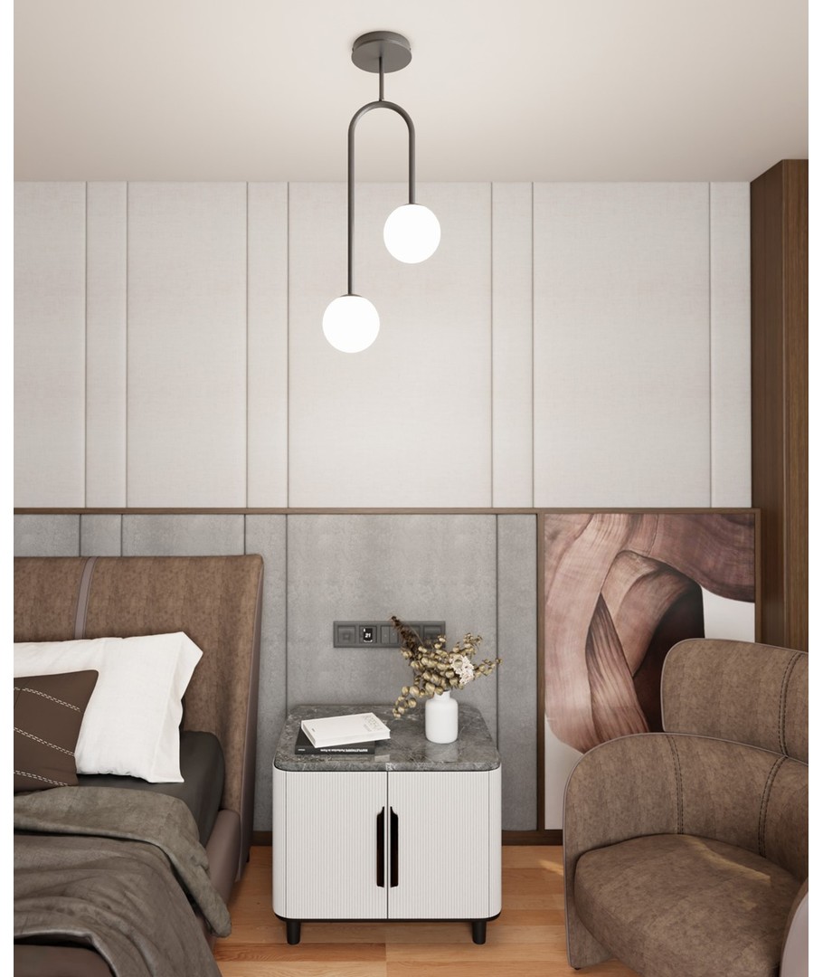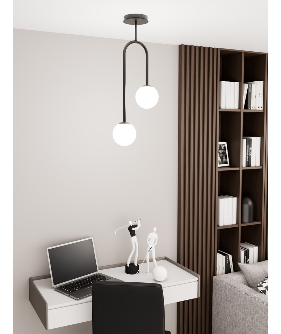 Atria 2 Sort/Opal pendellampe kombinerer stil og funksjonalitet i en slående design som passer perfekt inn i ditt moderne hjem.