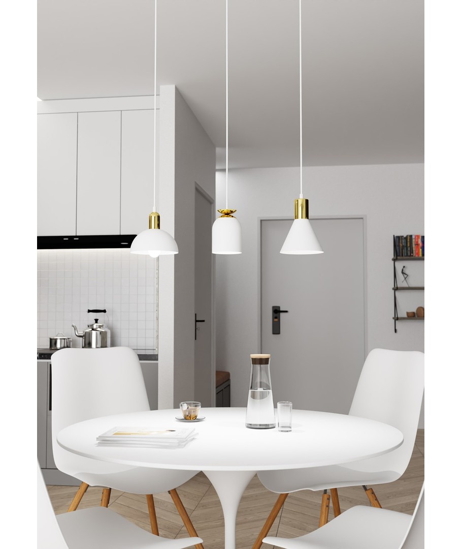 Denne pendellampen er ideell for oppholdsrom, spisestuer eller kjøkken hvor du ønsker å skape en koselig og lys atmosfære. Det rene, hvite designet gjør at lampen lett smelter inn i forskjellige interiørstiler, fra det moderne til det mer tradisjonelle.