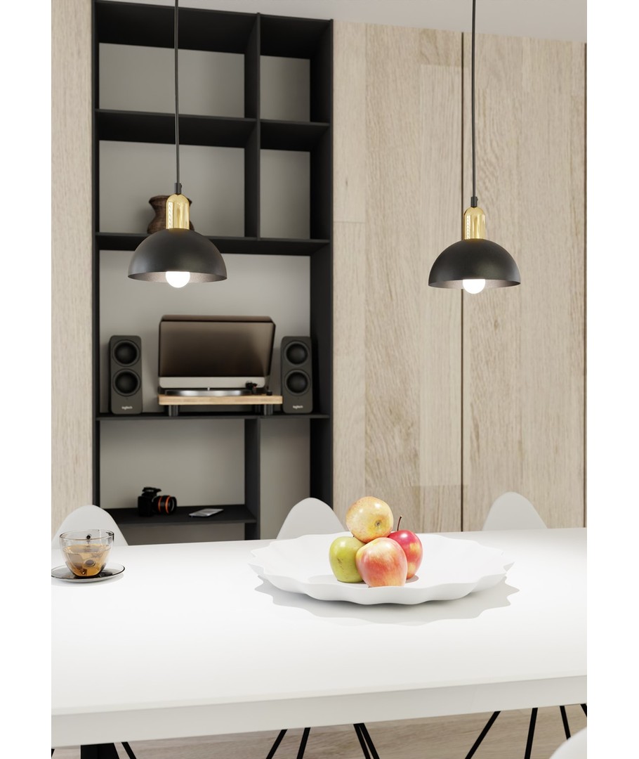 Opplev den elegante Moto 1 Sort pendellampe, hvor industriell design møter raffinerte detaljer. Denne taklampen er utstyrt med en rå metal lampeskjerm, som tilfører en moderne touch til ethvert rom. Den gyldne aksenten øverst tilfører både varme og subtil eleganse til designet. Moto-lampen er ideell for stuen, spisestuen eller som belysning over kjøkkenøya, hvor den skaper en stilfull kontrast og en unik atmosfære. Med Moto får du original belysning som kombinerer funksjon med estetikk.