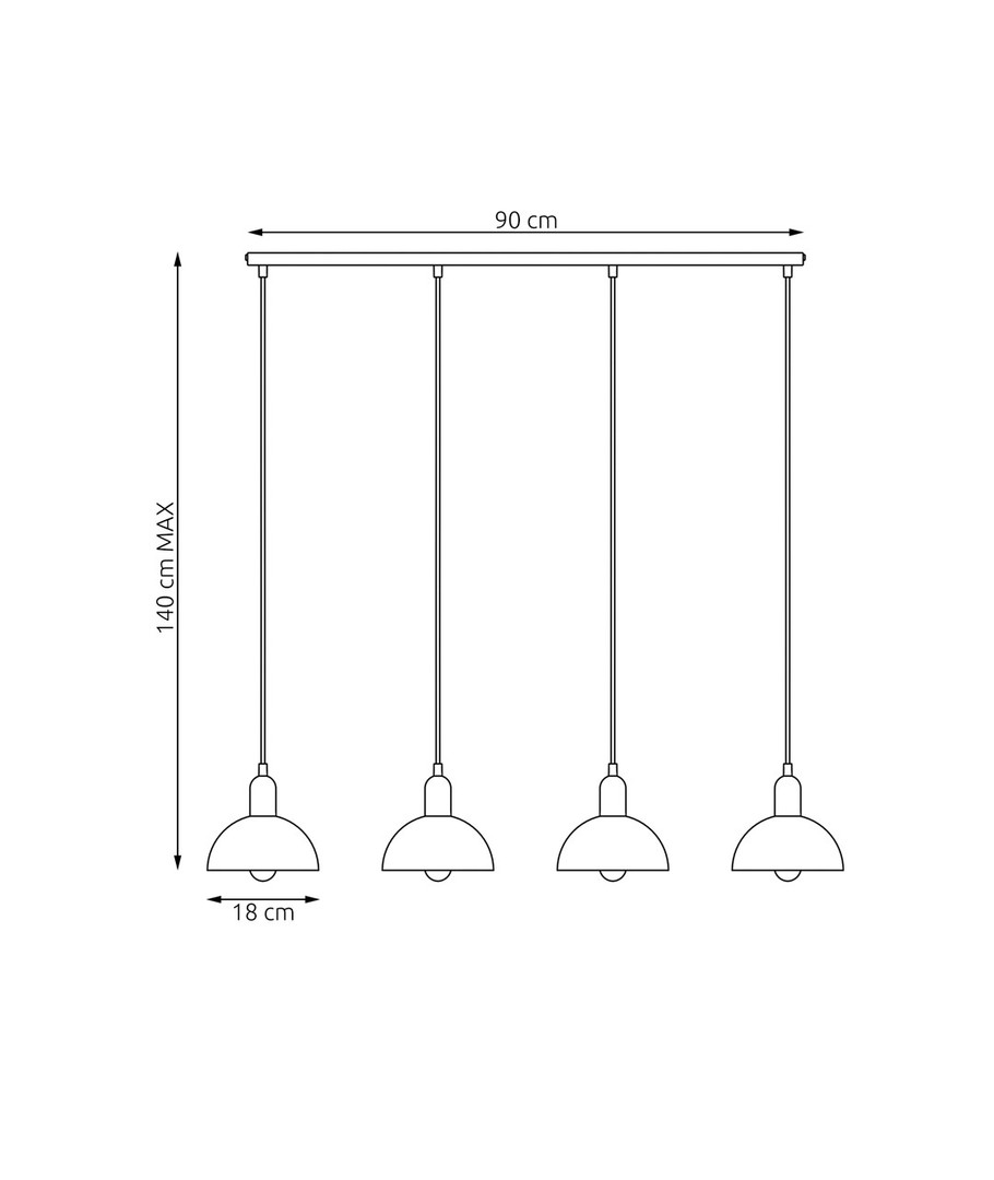 Dimensjoner: 900 x 1400 x 180 x Ø180 mm gir denne pendellampen en balansert størrelse som fungerer både som et blikkfang og en funksjonell lyskilde.