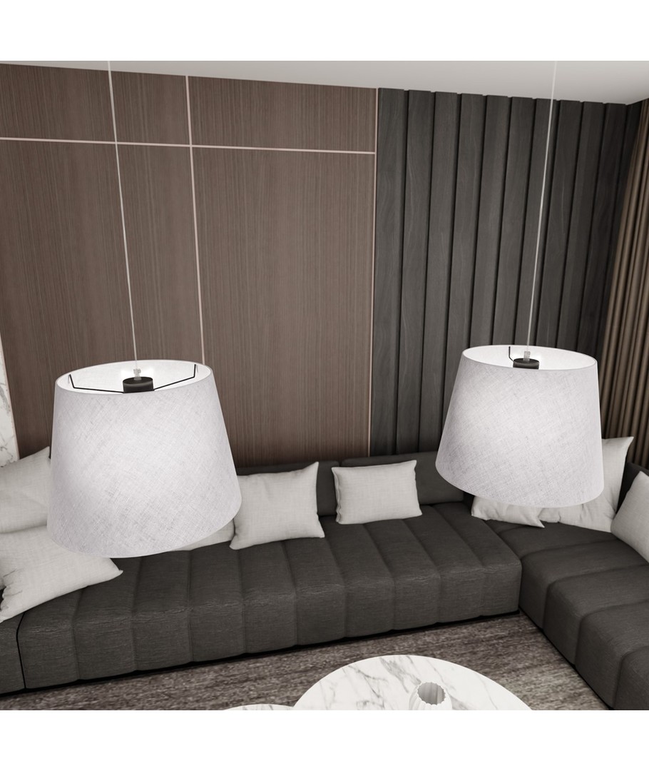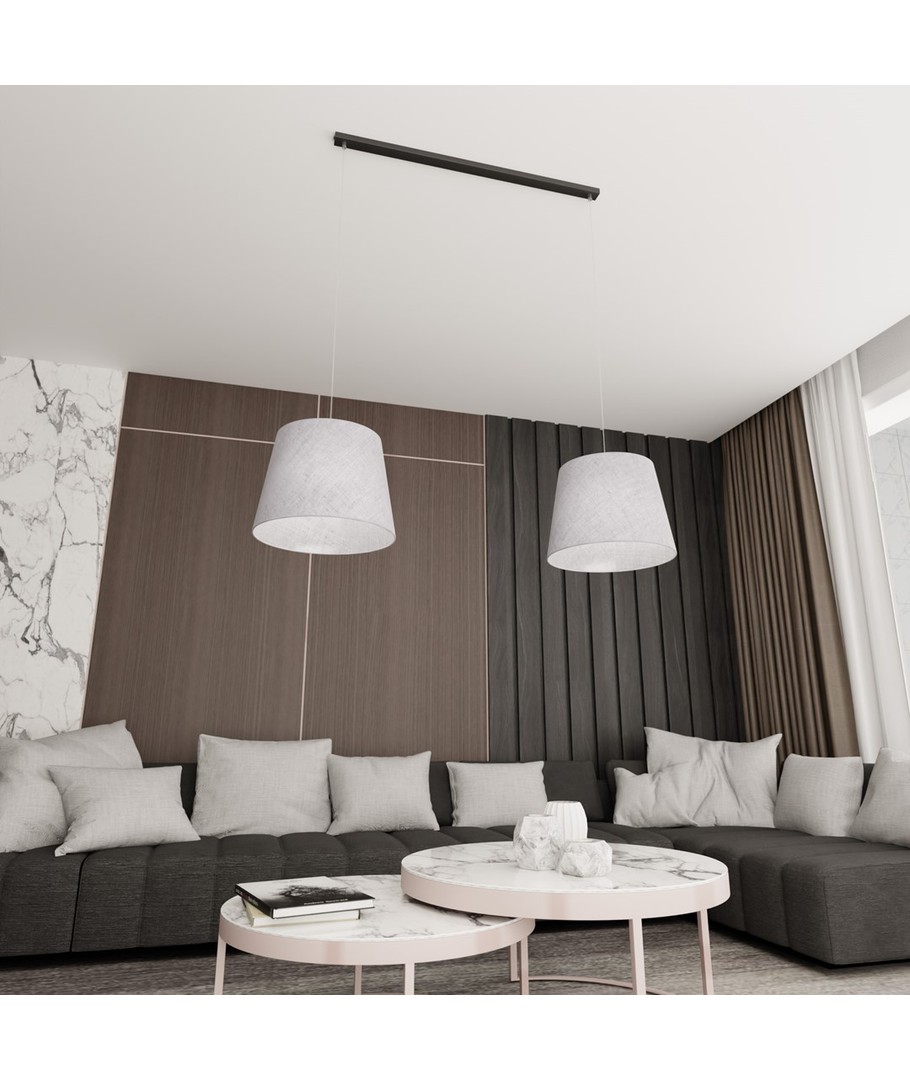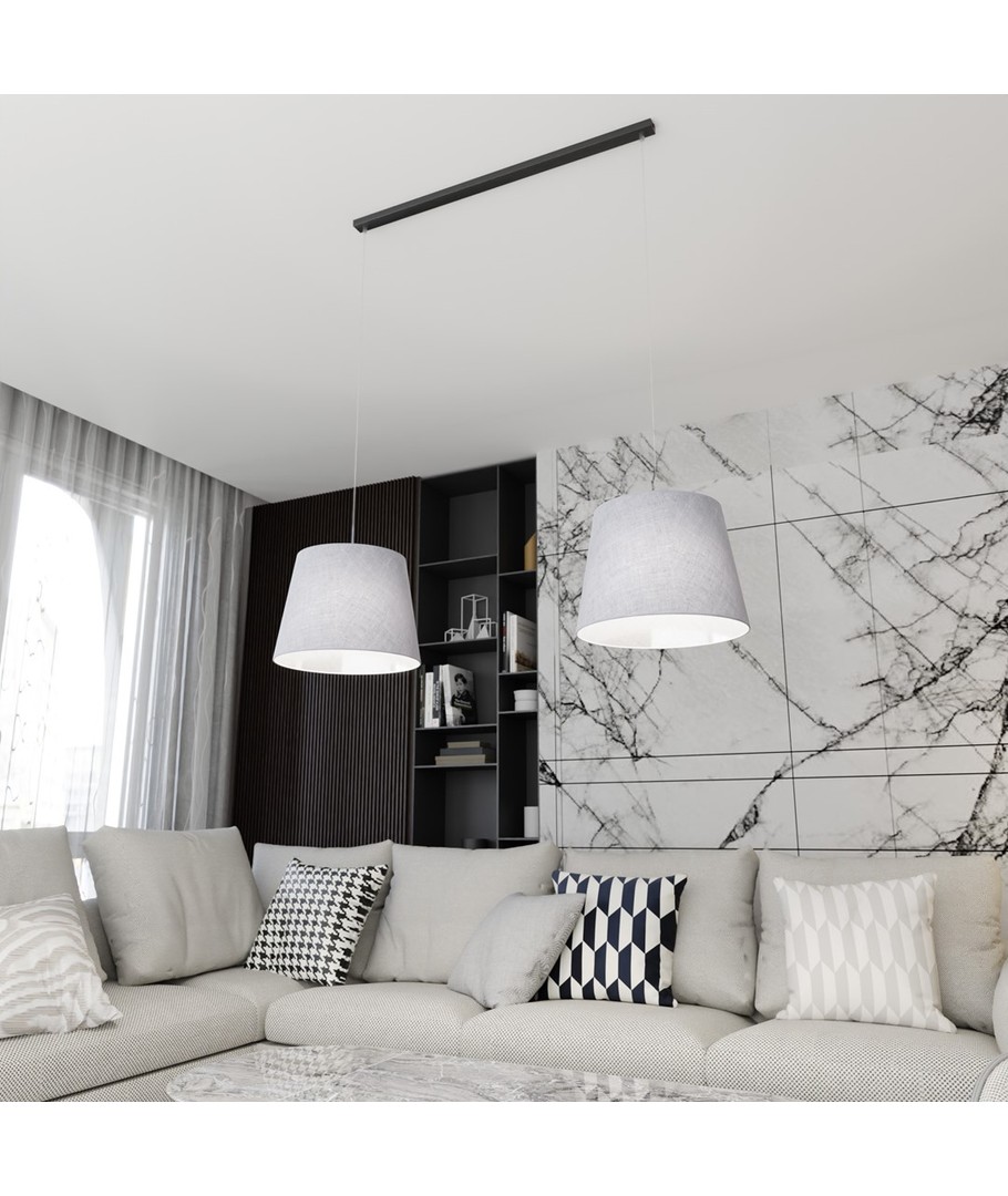 Epoca 2 Grå pendellampe er en stilfull belysningsenhet som tilfører eleganse og hygge til enhver innredning. Stoffet i lampeskjermene sprer lyset og skaper en varm og behagelig atmosfære, noe som gjør den ideell for stuer, spiseområder eller soverom. Lampen kombinerer klassisk design med et snev av modernitet og passer vakkert inn i både tradisjonelle og moderne omgivelser, der den tilfører en subtil sjarm til rommet.