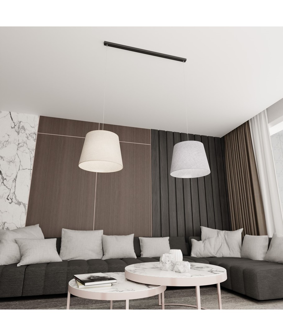 Opplev den elegante Epoca 2 Mix pendellampe som bringer et snev av sofistikasjon til ditt hjem. Denne lampen kombinerer klassisk design med moderne elementer og passer perfekt inn i både tradisjonelle og moderne interiører. Med sine stoffskjermer i grå og beige skaper den en varm og innbydende atmosfære, ideell for stuen, spisestuen eller soverommet. Epoca-lampens justerbare høyde gir fleksibilitet til å passe i enhver rominnstilling, mens dens to fatninger sikrer effektiv belysning.