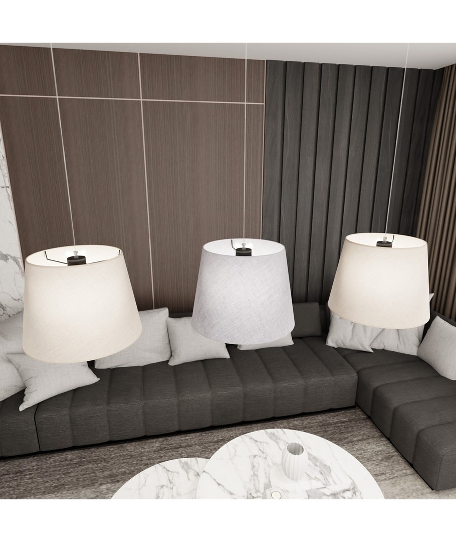 Epoca 3 Mix pendellampe er den perfekte kombinasjon av stil og funksjonalitet i ditt hjem. Med elegante stoffskjermer skaper lampen en varm og innbydende atmosfære, ideell for stuer, spisestuer og soverom. Designet balanserer klassisk eleganse og moderne stil, noe som gjør den egnet for både tradisjonelle og moderne interiører. Ved å legge til denne lampen i din plass, oppnår du ikke bare behagelig belysning, men også en subtil, dekorativ sjarm.