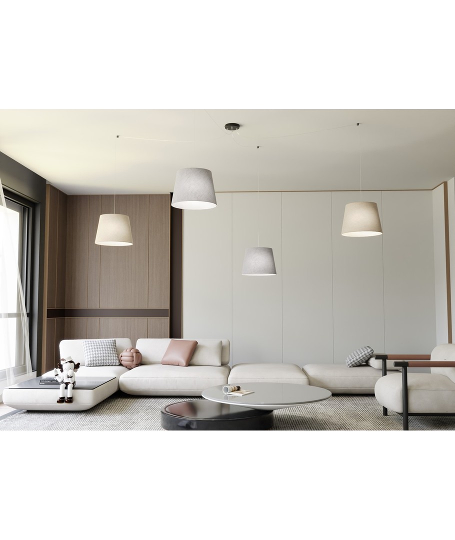 Opplev minimalistisk eleganse med Ascot 4 Mix-pendellampen. Denne lampen er et perfekt eksempel på hvordan enkelhet kan kombineres med moderne stil. Med sin stoffskjerm i subtile grå og beige nyanser skaper Ascot et behagelig, diffust lys som skaper en varm atmosfære i ethvert rom. Ideell for stuer, spisestuer eller kjøkken hvor den vakkert integreres og tilfører et stilfullt preg. Det er det opplagte valget for dem som verdsetter estetikk og funksjonalitet i sin innredning.
