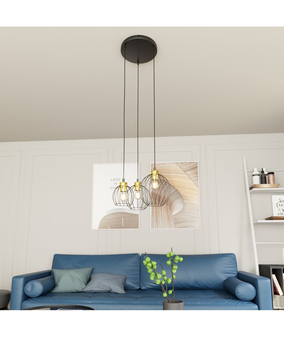 Opplev den moderne utgaven av den populære loftsstilen med Nando 3PREM pendellampe i svart og gull. Denne stilige lampen er laget av solid pulverlakkert stål, som gir den et rått og industrielt utseende. De åpne wireskjermene skaper fascinerende lyseffekter som tilfører originalitet til dine rom. Ideell for stuen, spisestuen og kjøkkenet, hvor den tilfører et unikt loft-look. Med justerbar høyde kan du tilpasse lampens uttrykk nøyaktig som ønsket. Skap en imponerende atmosfære i det moderne hjemmet med denne iøynefallende belysningsløsningen.
