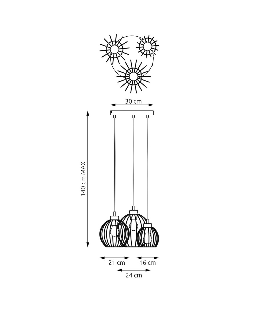 Lampen har en diameter på Ø240 mm og totaldimensjoner på 300 x 1400 x 300 mm, noe som gjør den til et flott midtpunkt over et bord eller i en entré. Vær oppmerksom på at lyskilden ikke er inkludert, noe som gir deg friheten til å velge belysningen som passer best til dine behov.