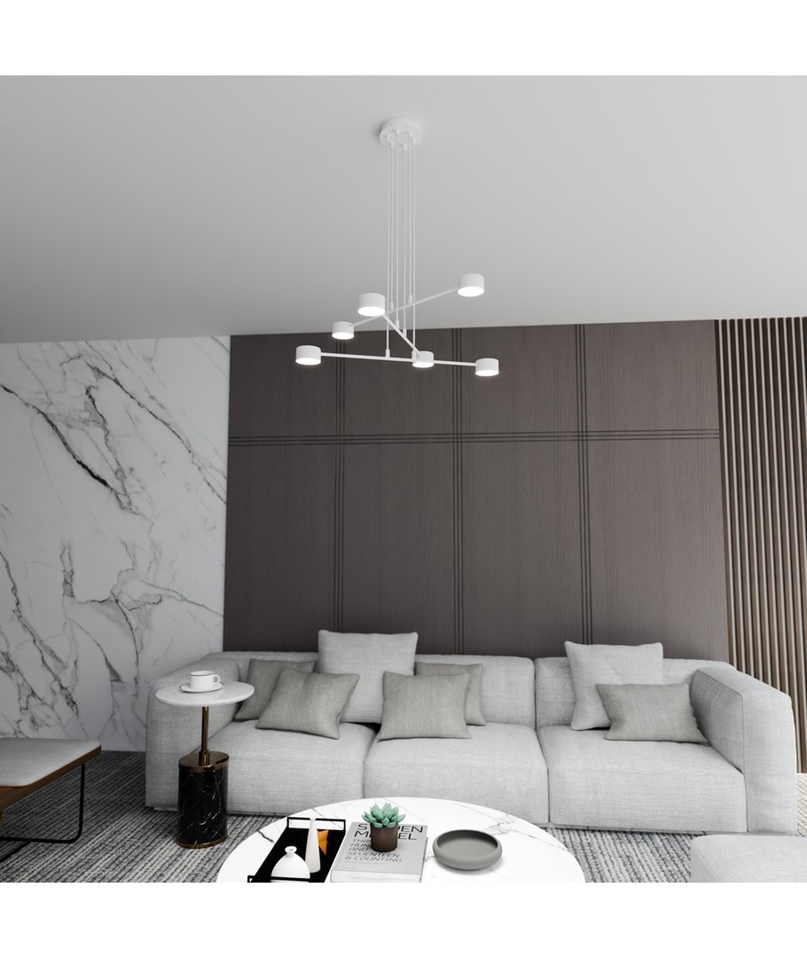 Oppgrader ditt interiør med den elegante og moderne Modus 6 Hvit Pendellampe. Denne stilrene lampen gir et stilrent uttrykk som passer perfekt inn i både moderne og klassiske hjem.