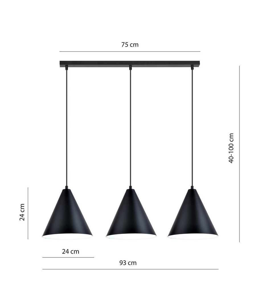 Lampens sorte kjegleformede skjerm med en hvit innvendig overflate sikrer ikke bare karakter, men optimerer også lysfordelingen ved å gi en behagelig og varm belysning.