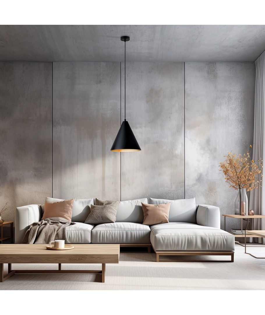 Oppgrader din boliginnredning med Rebel 1 Sort/Gull pendellampe, som kombinerer unik industriell stil med funksjonell belysning. Lampen er fremstilt av holdbart pulverlakkert stål og har et minimalistisk design, hvor den sorte koniske skjermen med en hvit innside fremhever rommets karakter, samtidig som den optimerer lysfordelingen. Perfekt for moderne rom, hvor en rå estetikk ønskes, og hvor varm og behagelig belysning er et must.