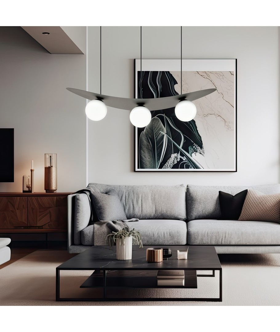 Opplev en ny dimensjon av minimalistisk design med Aura 3 pendellampe. Denne lampen, laget av svart pulverlakkert stål og med en elegant grafittfarget skjerm, er formet som en buet oval og tilfører subtil eleganse til ethvert interiør. Med sin moderne og minimalistiske karakter er denne pendellampen det ideelle valget for dem som ønsker å friske opp sine rom og skape et belysningsmiljø som er både funksjonelt og estetisk vakkert. Lampen passer perfekt inn i moderne hjem og kontorer, hvor den kan fungere både som hovedbelysning eller som dekorativ detalj.