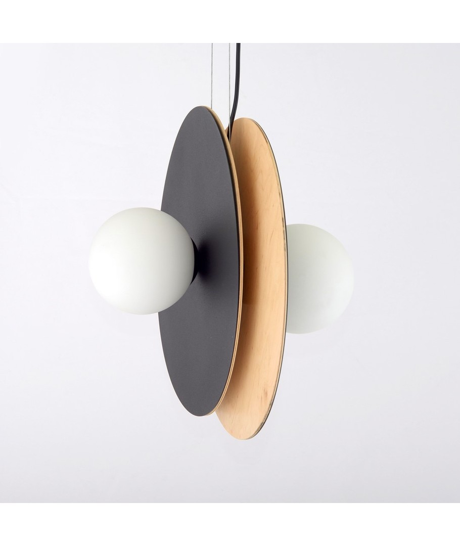Soho 2 Sort/Opal pendellampe er det perfekte valg for å bringe eleganse og modernitet inn i ditt hjem. Designet kombinerer et metall-sirkulært mønster med naturlig kryssfiner, noe som skaper en unik blanding av industriell stil og subtile tredetaljer. Den grafittfargede lampeskjermen gir lampen et markant uttrykk, og skaper en moderne kontrast til de andre elementene. Dette gjør Soho-lampen ikke bare til en kilde av behagelig lys, men også til en attraktiv dekorativ tillegg som uttrykker personlig stil og designfornemmelse.
