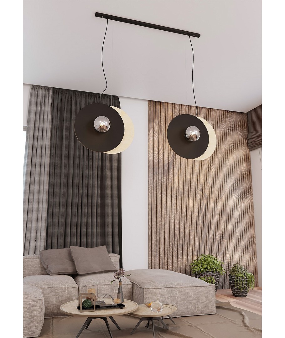 Forvandle hjemmet ditt med denne stilige og moderne pendellampen. Med sitt minimalistiske design og sofistikerte fargekombinasjon i sort og grafitt, vil lampen være et blikkfang i ethvert rom.