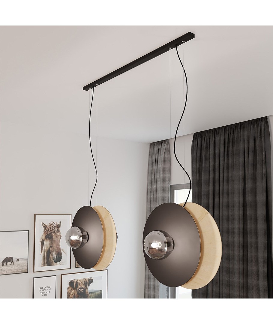 SOHO pendellampen er et elegant og moderne element til ditt interiør. Med en unik kombinasjon av en metallcirkel og naturlig kryssfiner, tilbyr den en enestående fusjon av industriell design med subtile tredetaljer. Lampens skjerm i grafittfarge gir den et markant uttrykk, som skaper en moderne kontrast til de øvrige elementene. Dette gjør at SOHO belysningen ikke bare gir behagelig lys, men også fungerer som en attraktiv dekorativ komponent i ditt hjem. Perfekt for dem som ønsker å uttrykke sin individuelle stil og designfølelse i sin innredning.