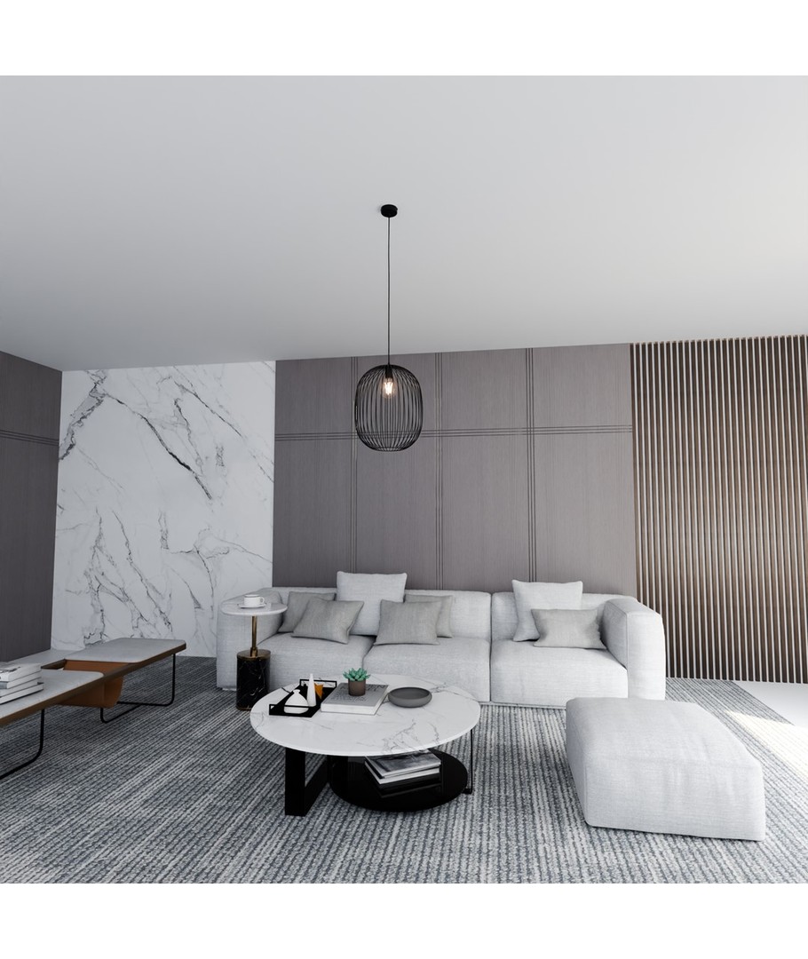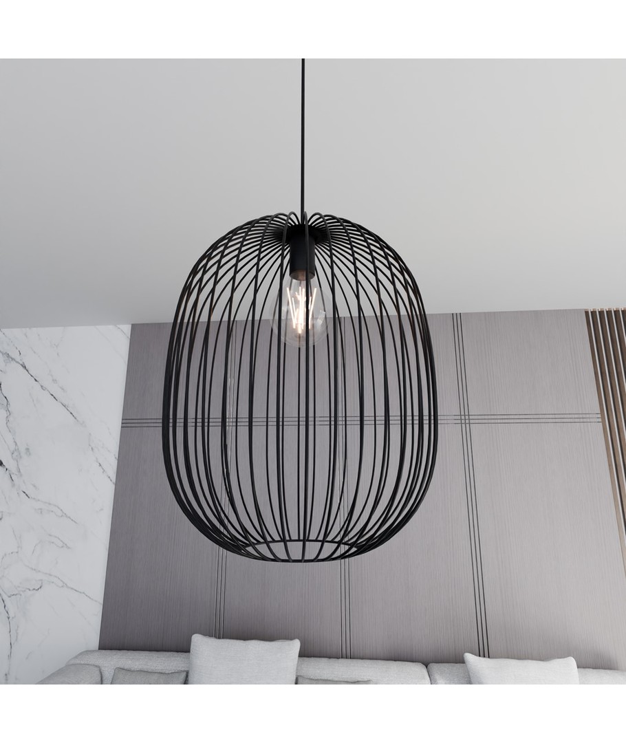 Legg til karakter til interiøret ditt med Onyx pendellampen. Den er laget av holdbart pulverlakkert stål og har et minimalistisk og industrielt design som gjør den til et unikt element i rommet ditt. Den store, sorte, ovaltformede trådsjermen tilfører en rå sjarm og skaper samtidig unike lyseffekter. Onyx lampen passer perfekt inn i den industrielle designtrenden og tilfører en blanding av røffhet og modernitet til ethvert interiør. For dem som søker en ukonvensjonell belysningsløsning som både er funksjonell og stilfull, er dette et utmerket valg.