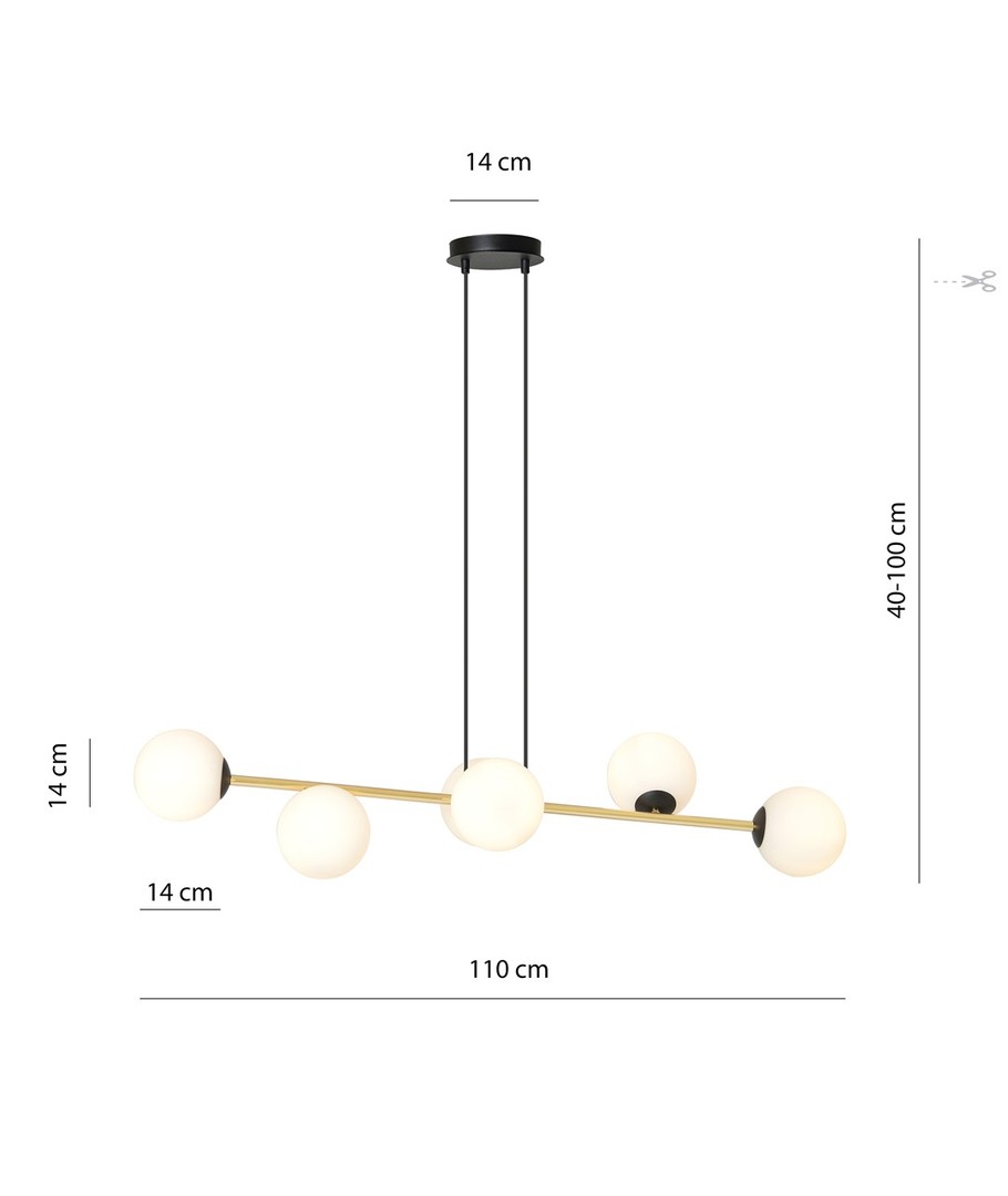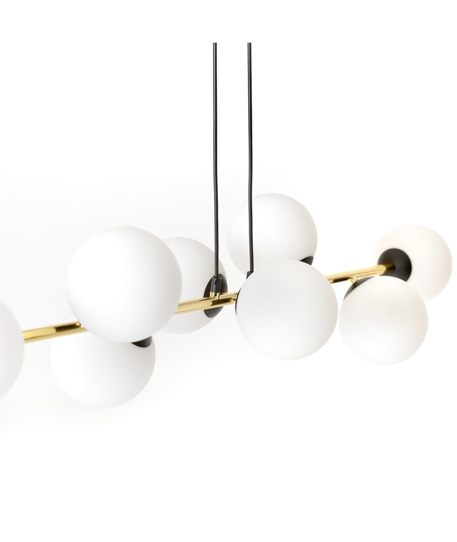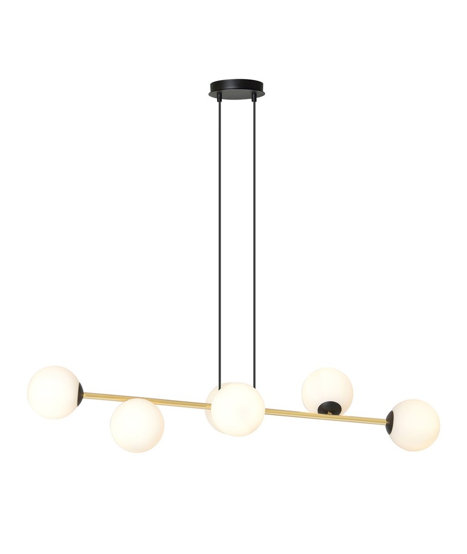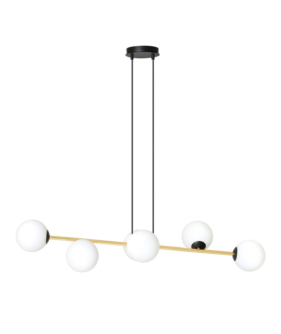 Gravity 6 Sort/Opal pendellampe er en sofistikert kombinasjon av minimalistisk design og glamorøse gulldetaljer. Denne pendellampen tilfører et snev av eleganse til både moderne og klassiske interiører. Med sine nøye utvalgte materialer sikrer Gravity-lampen både holdbarhet og et tidløst, elegant utseende. De gylne aksentene står i flott kontrast til lampens enkle form, noe som gir rommet en forfriskende glød og liv. Denne lampen er perfekt for å skape en spesiell atmosfære som kombinerer stil og funksjonalitet.