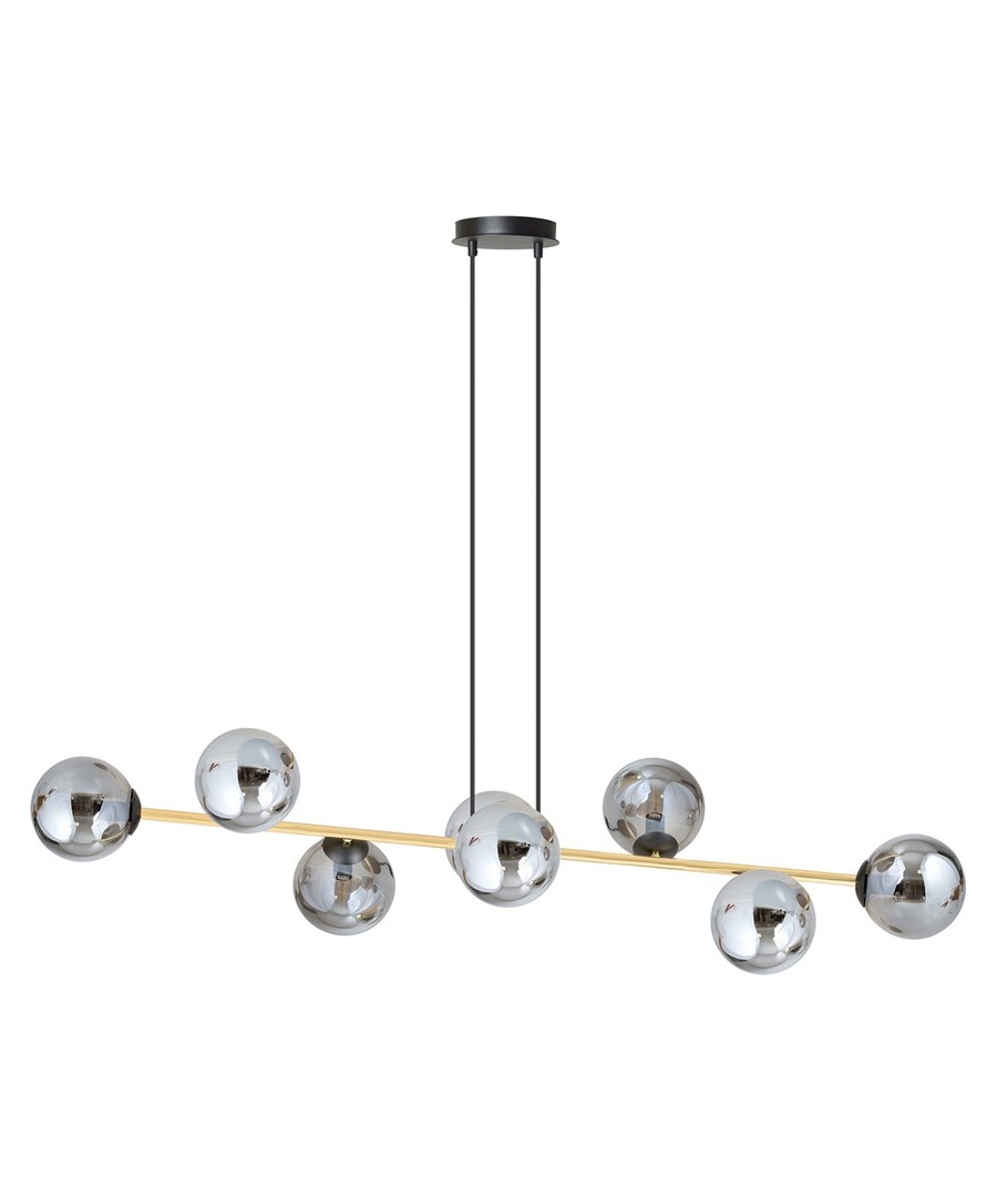 Gravity 8 Sort/Grafit pendellampen er den ultimate kombinasjonen av moderne minimalisme og glamorøse gullakenter, som gir din innredning en helt spesiell eleganse. Denne taklampen er ideell for både moderne og klassiske rom og skaper en atmosfære av raffinement og stil. Laget av materialer i høyeste kvalitet sikrer Gravity-lampen ikke bare et holdbart design, men også en vedvarende estetisk appell. Det delikate samspillet mellom den minimalistiske formen og gullets glans gir rommet et livfullt og sofistikert uttrykk.