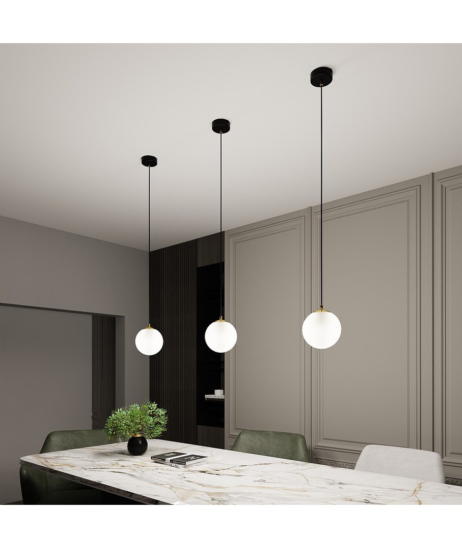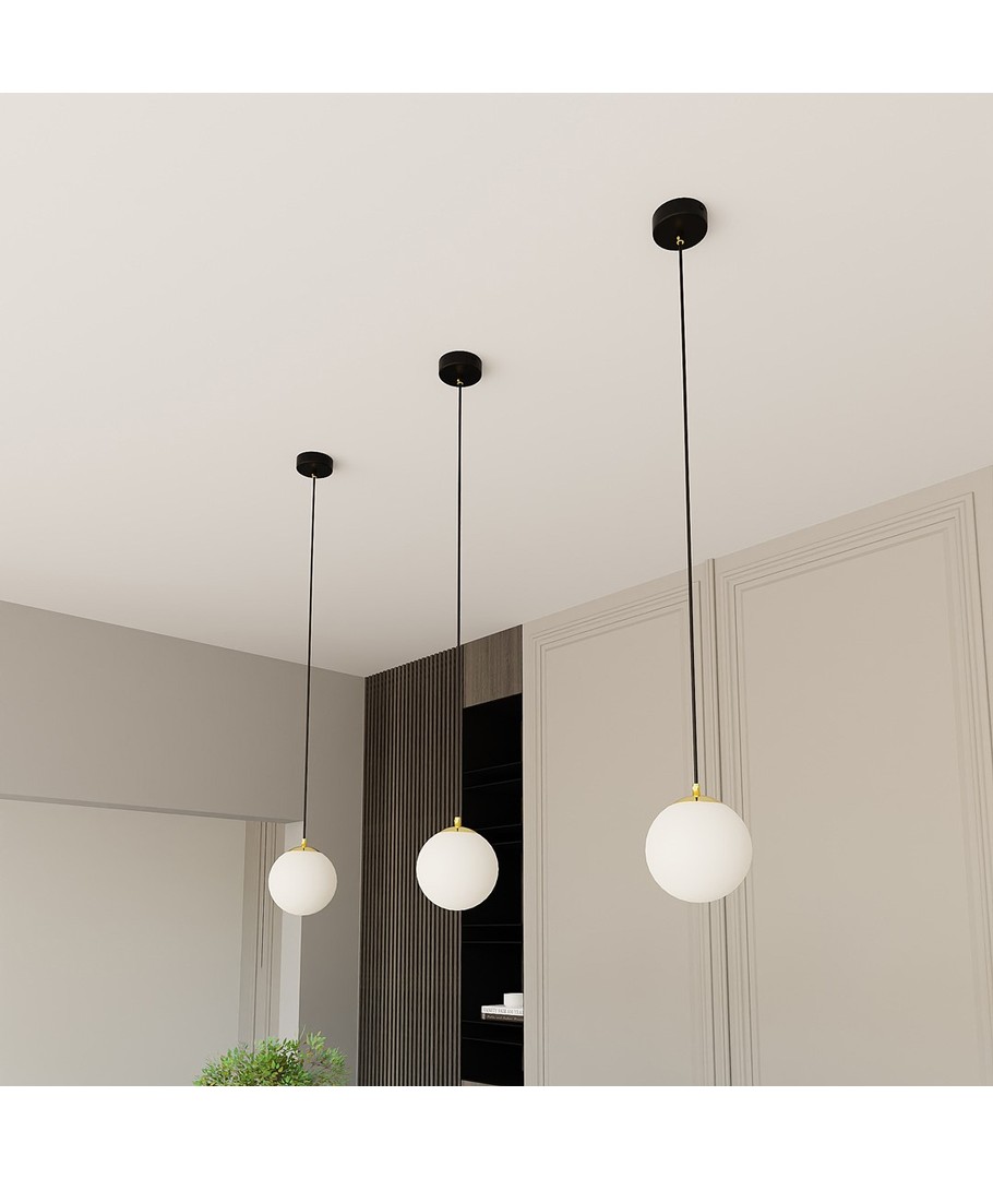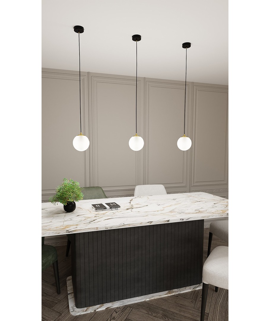 Opplev eleganse og funksjonalitet med Royal 1 Sort pendellampe, som passer perfekt inn i moderne boliginredning. Denne minimalistiske taklampen fra ROYAL-serien har et enkelt design med en rund takbase, som gjør den allsidig og egnet til mange rom som kjøkken, stue eller spisestue. Den subtile tilførslen av skinnende gull gir lampen et snev av eleganse og letthet, som både er stilfullt og tidløst.