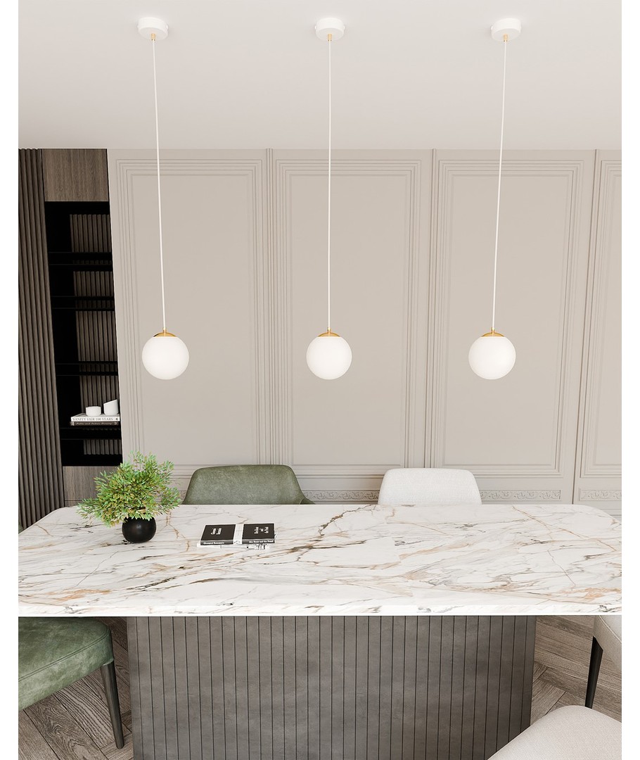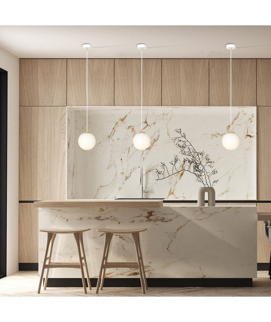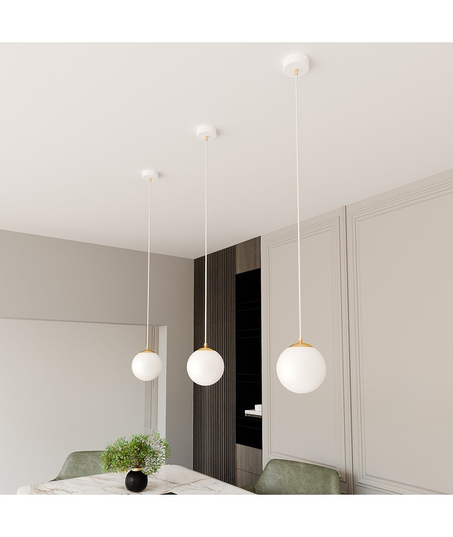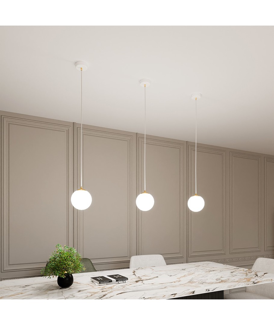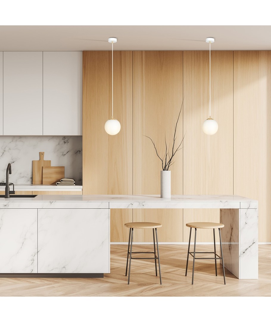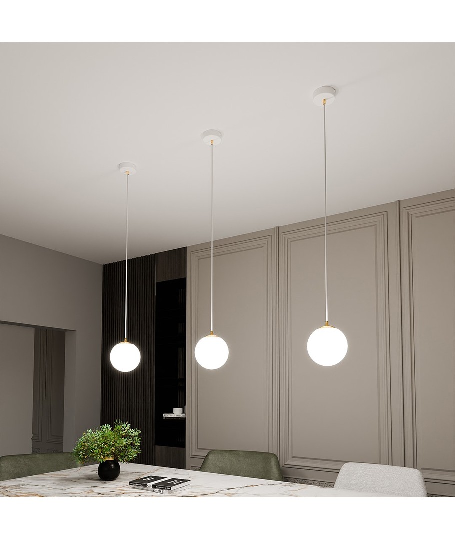 Denne pendellampen har en ren hvit finish som lett kan integreres i ulike interiørstiler, fra moderne til klassisk. Med sin kompakte størrelse er den ideell for mindre rom eller som del av en gruppe med flere lamper.