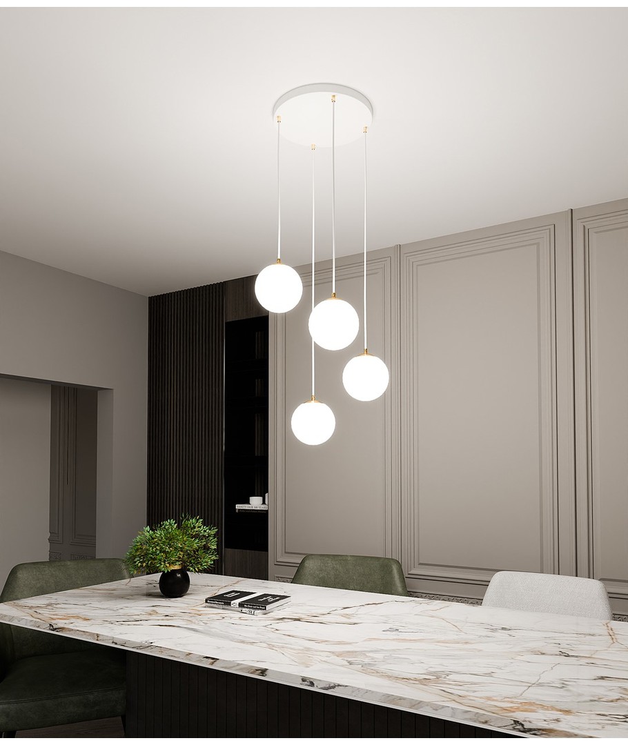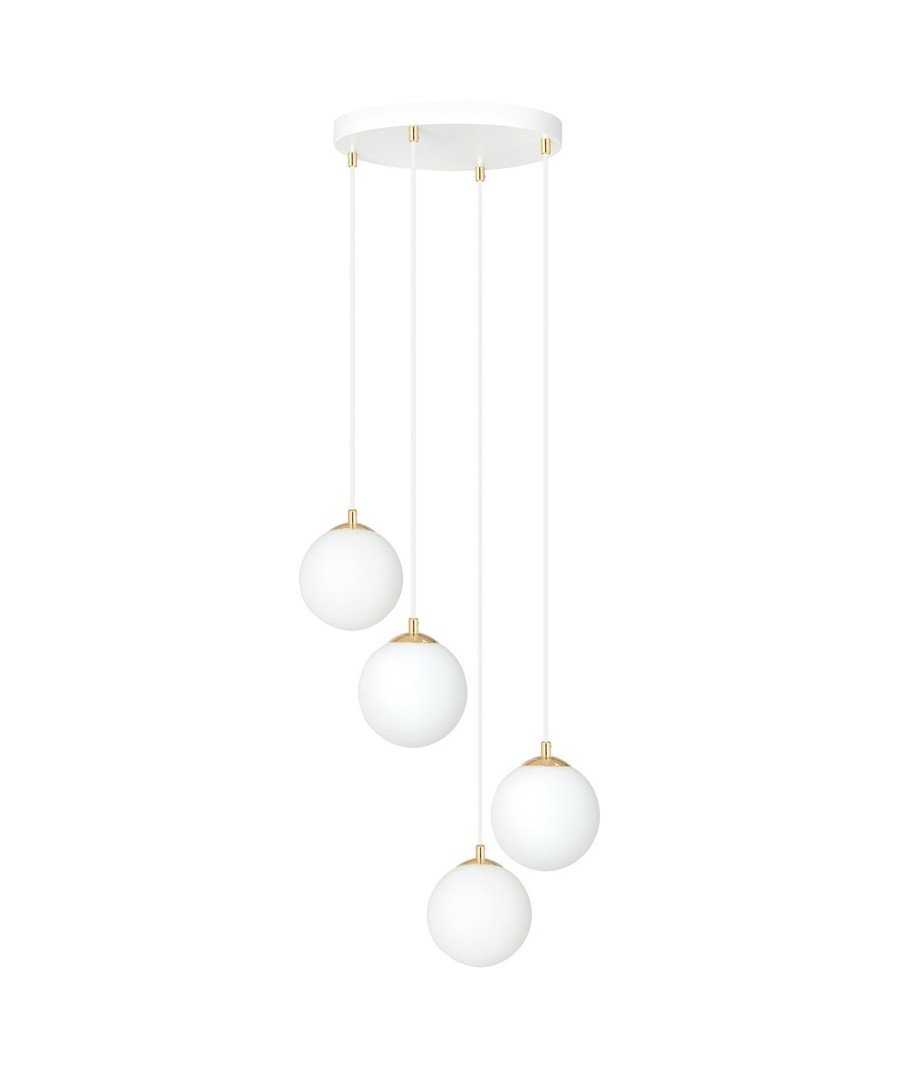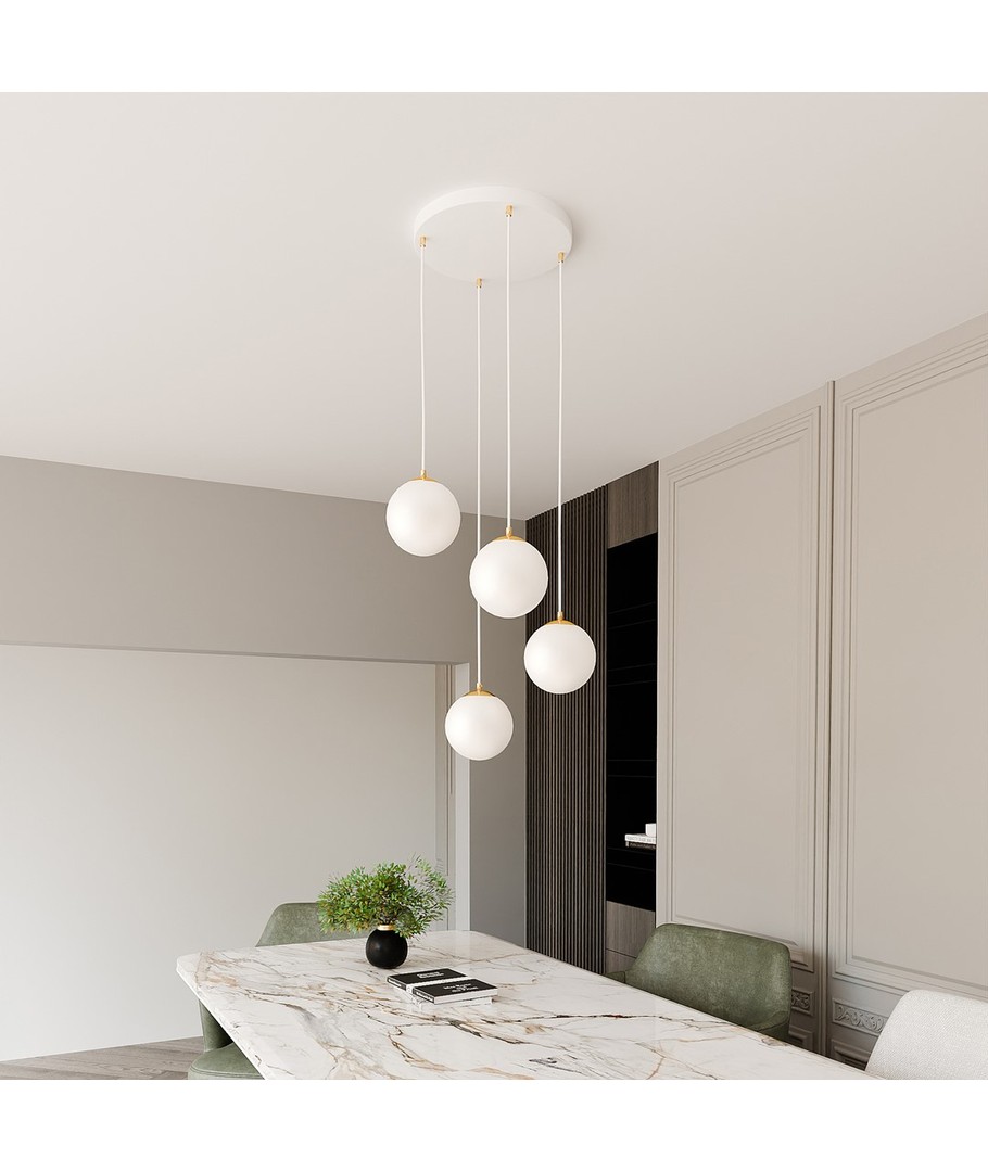 Royal 4 Hvit pendellampe er en del av den elegante ROYAL serie, som tilbyr minimalistisk design som passer perfekt inn i moderne trender. Denne pendellampen har en enkel konstruksjon med en rund takbase, som gjør den allsidig og egnet til forskjellige rom som kjøkken, stue eller spisestue.