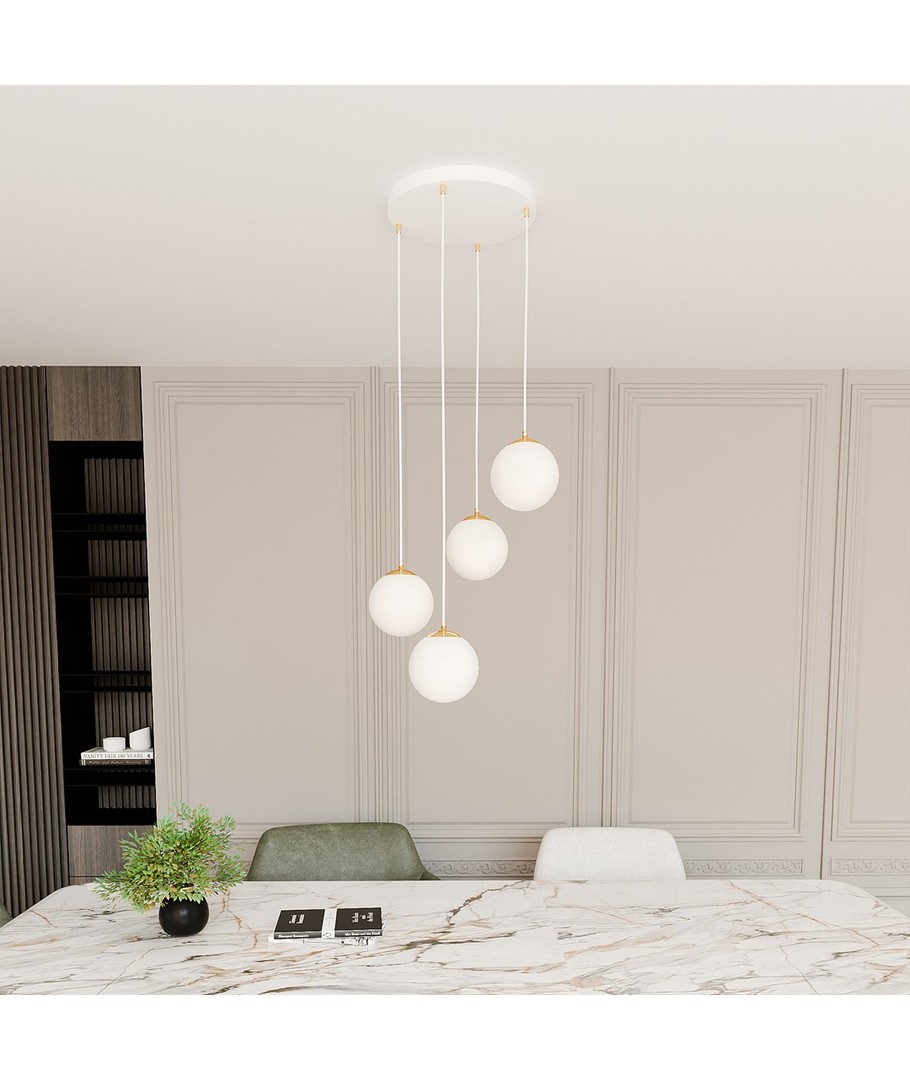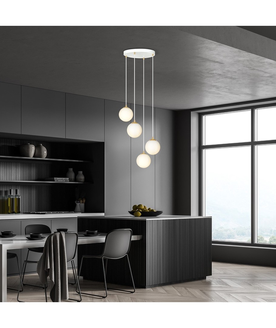 Forvandle ethvert rom med denne vakre Royal 4 Hvit pendellampe, som er designet for å gi et sofistikert og moderne preg til ditt hjem. Lampen er ideell for bruk i både stue og kjøkken, og dens nette størrelse gjør den lett å plassere.