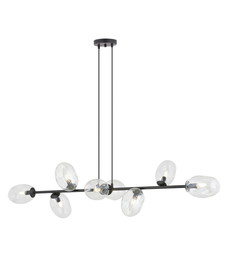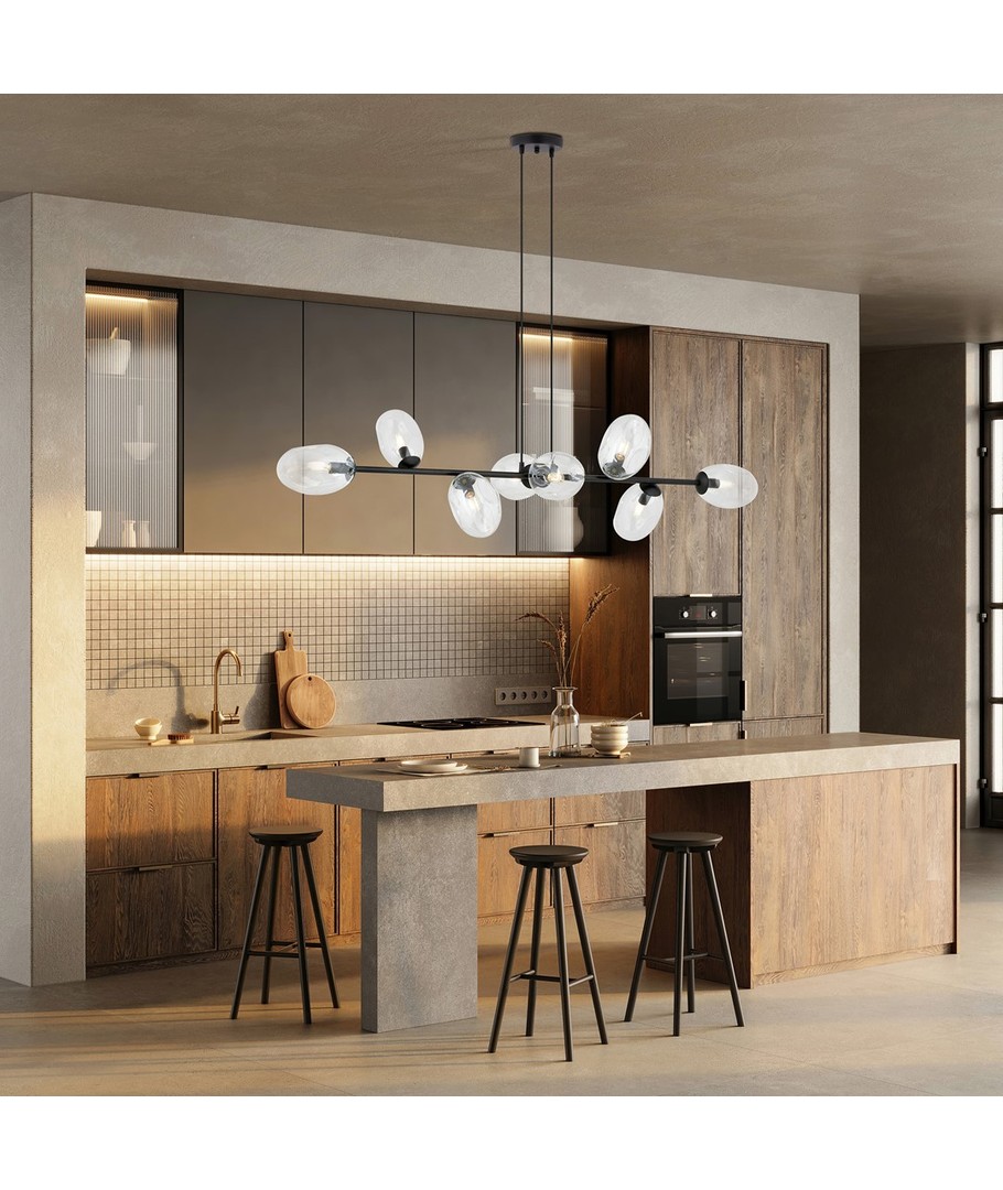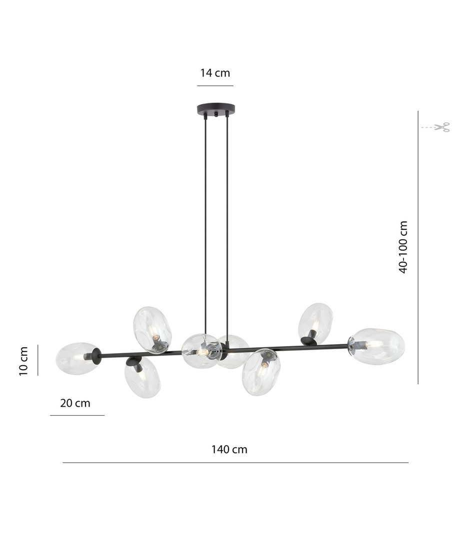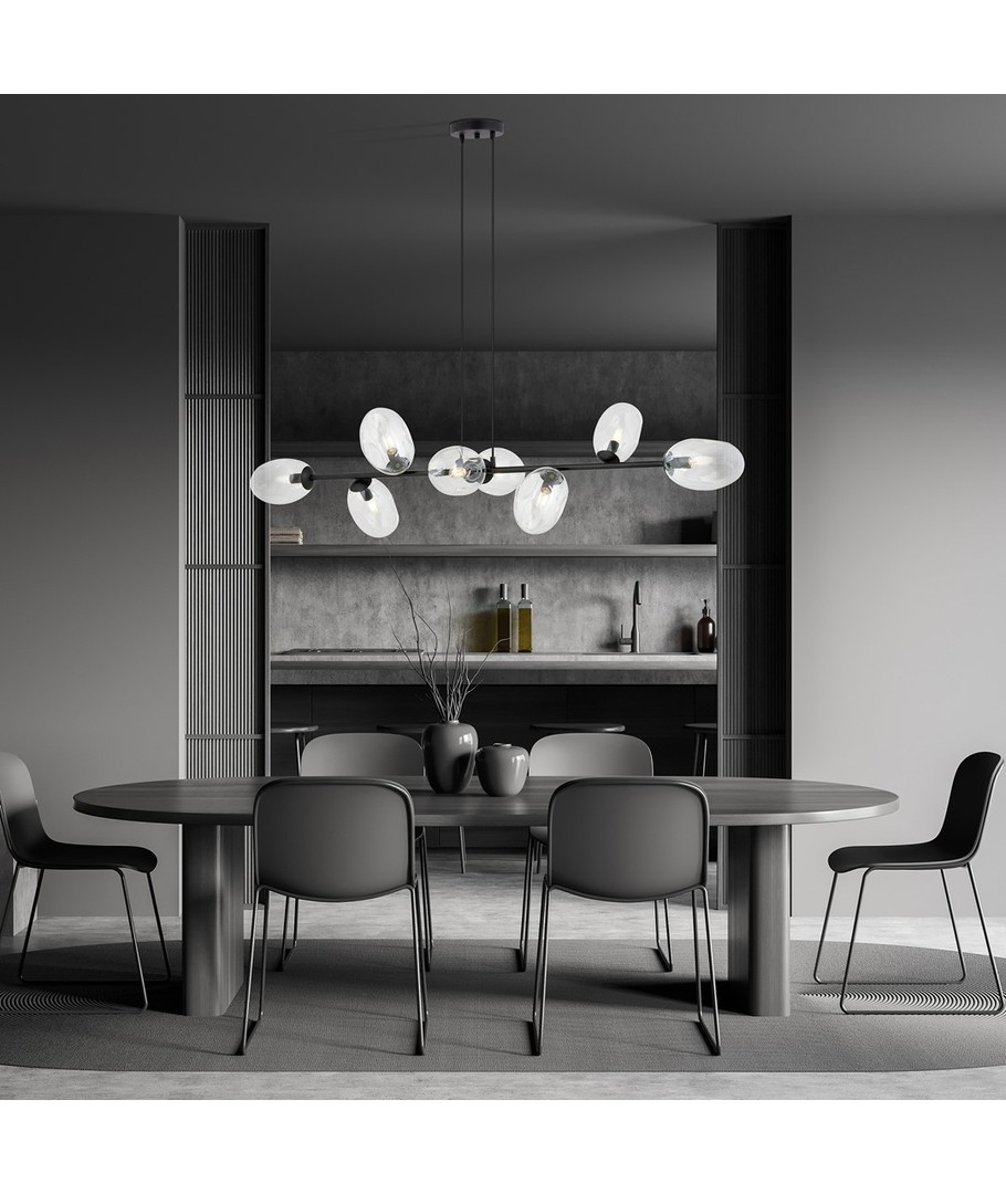 Skap en stilfull og moderne atmosfære med den elegante Pandora 8 pendellampen. Denne lampen kombinerer et sort og transparent design, perfekt for å tilføre et luksuriøst preg til ethvert rom.