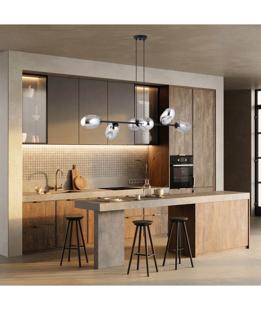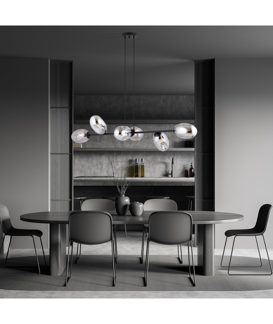 Legg til et snev av eleganse i ditt hjem med den stilrene Pandora 6 Sort/Grafitt pendellampe. Med sitt moderne design og subtile fargenyanser gir denne lampen en sofistikert og innbydende atmosfære uansett rom.