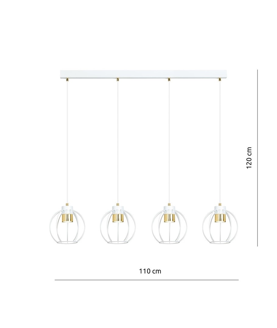 Ajax 4 Hvit/Gull pendellampe er den perfekte tillegg til moderne stuer og loftsrom. Denne elegante lampen skaper en unik atmosfære med sitt iøynefallende design. Den har justerbare ledninger, som gjør det mulig å tilpasse lampens høyde, slik at du kan sikre en jevn belysning i større områder.
