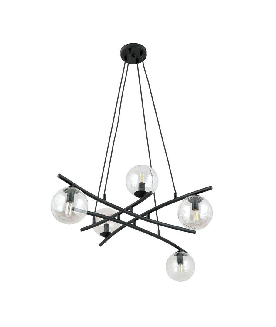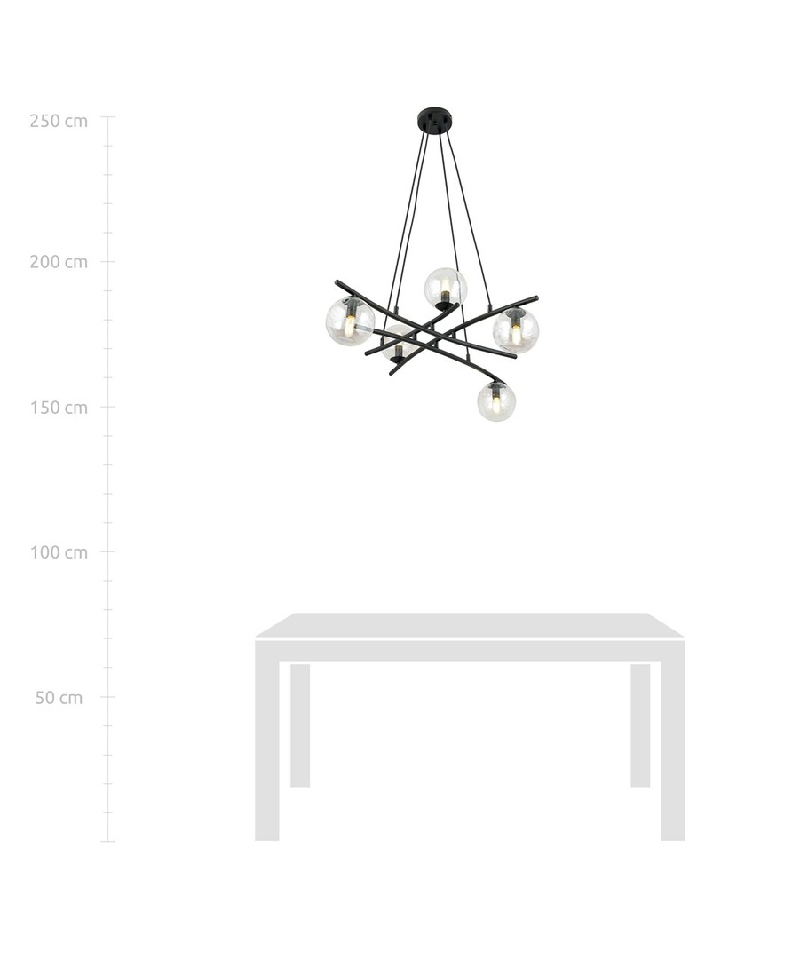 Essa 5 Transparent pendellampen er en del av den unike Essa-serien, som skiller seg ut med sitt eksepsjonelle og originale design. Lampens iøynefallende konstruksjon gjør den til et imponerende element i ethvert rom. Essa-lampen passer perfekt inn i stuen, hvor den tilfører en særegen karakter og stil. Med sine transparente glasskjermer fremstår lampen lett og grasiøs. Den er ikke bare vakker, men også ytterst funksjonell, da den effektivt lyser opp selv store rom og tilfører en unik sjarm.