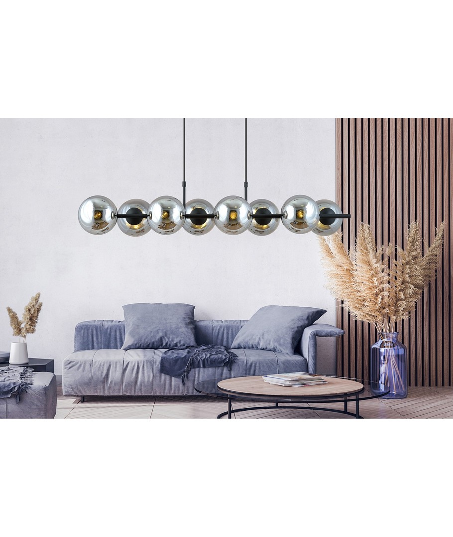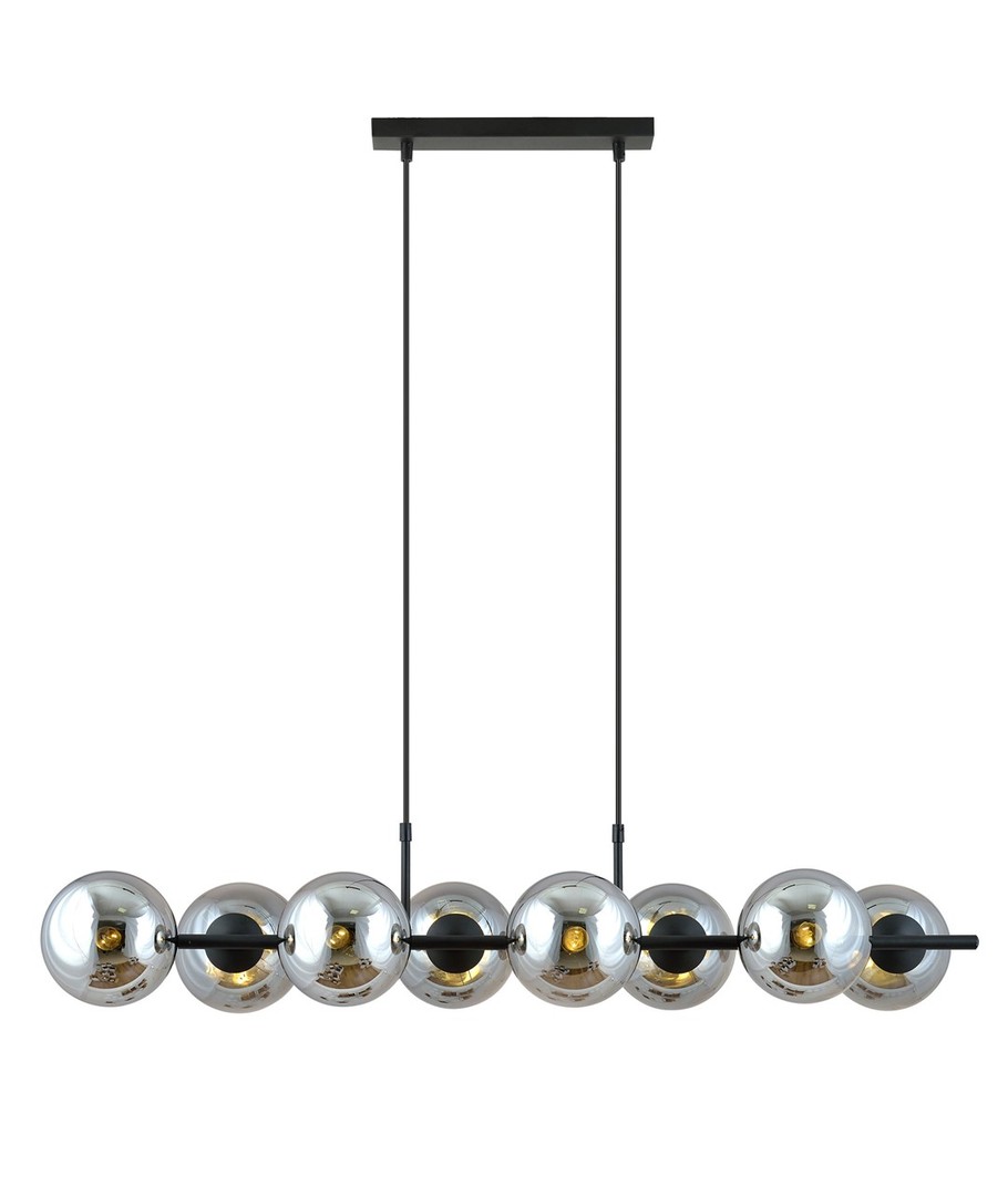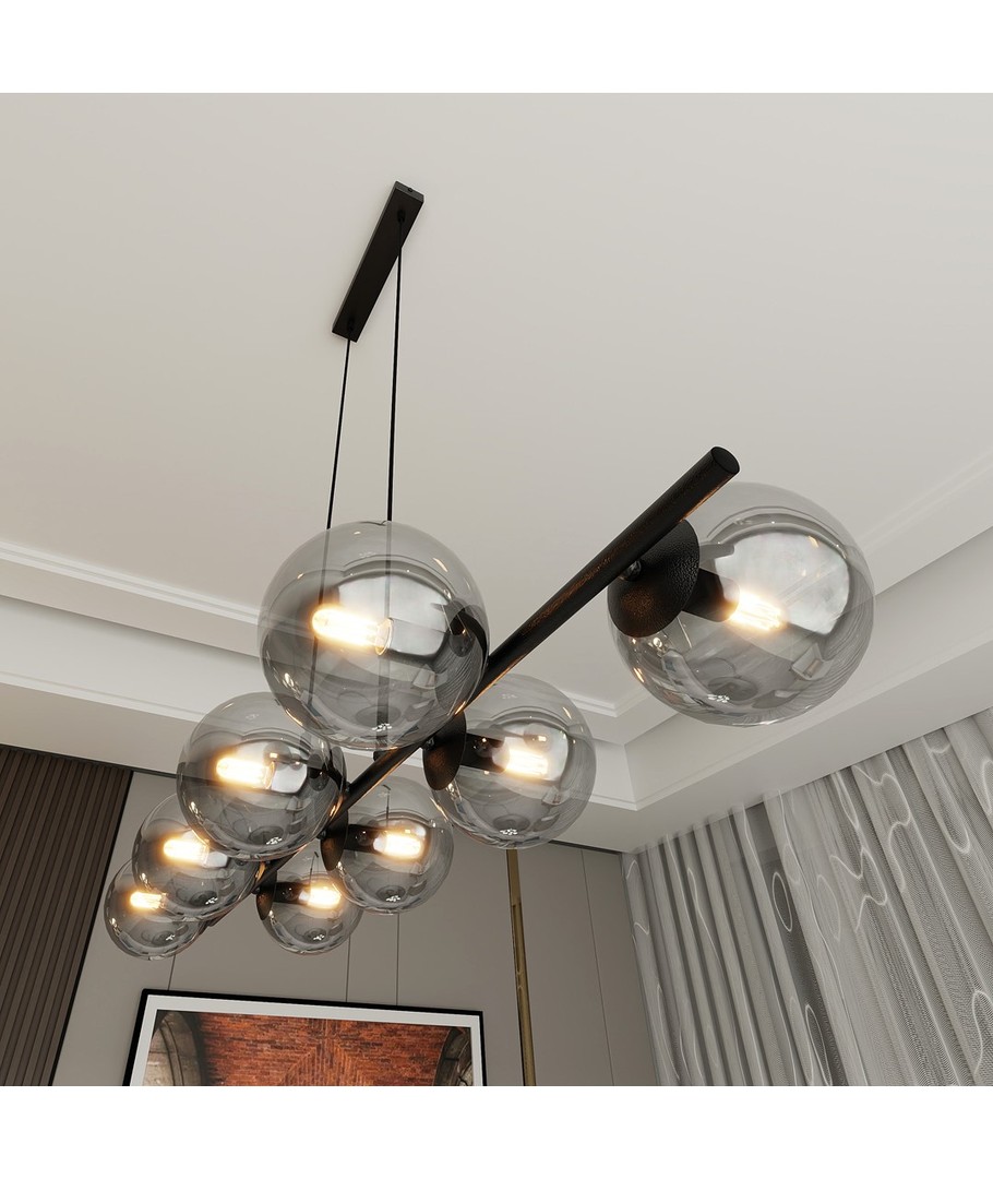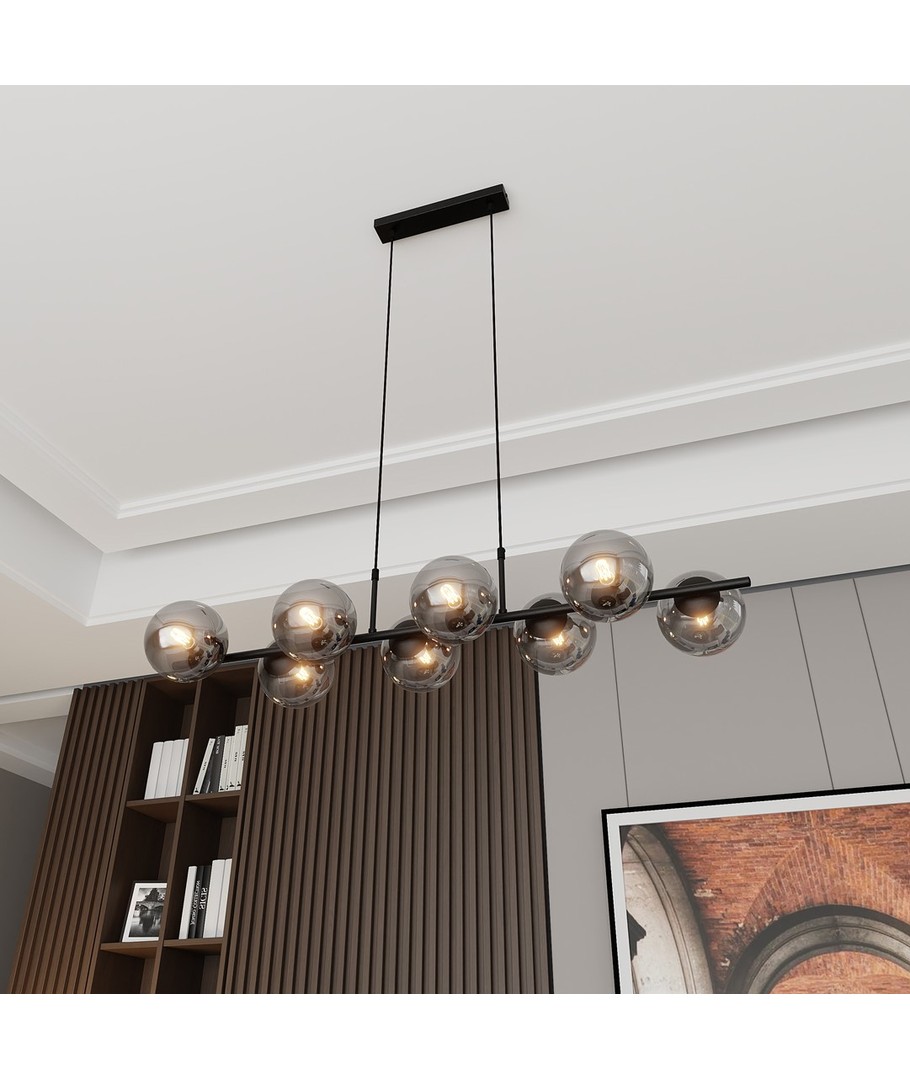 Rory 8 Grafitt pendellampe er den perfekte løsningen for både moderne og klassisk interiør. Med sitt tidløse design og lette glasskjermer tilfører den hjemmet ditt en stilfull detalj, samtidig som den effektivt lyser opp selv de største rom. Dette gjør den ideell for å skape et markant visuelt midtpunkt over spisebordet eller kjøkkenøya, noe som gir en unik touch til interiøret ditt. Lampens form smelter harmonisk sammen med rene linjer og åpne rom, og dens allsidige stil passer til en bred vifte av interiørtemaer.