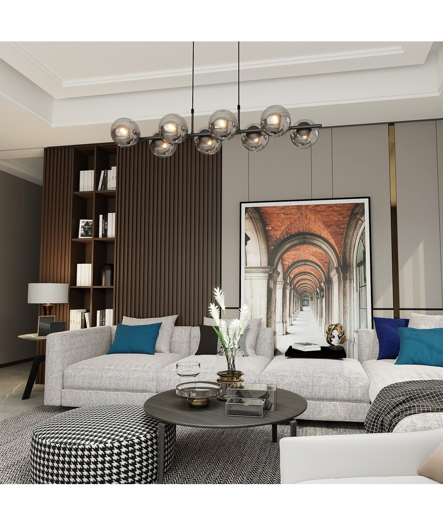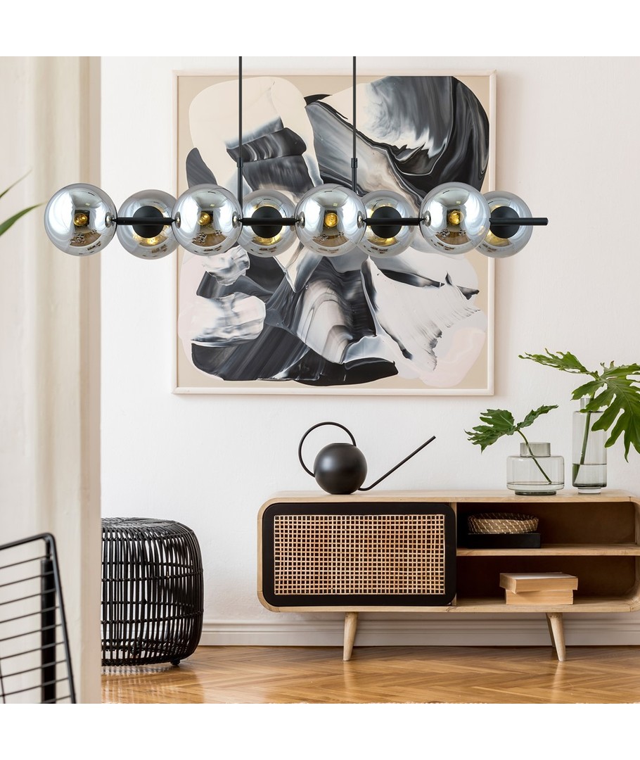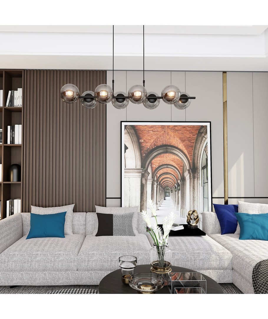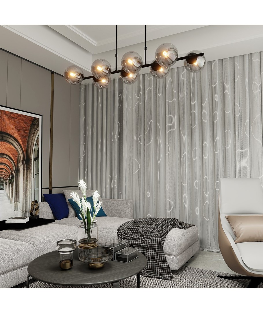 Rory 8 Grafitt pendellampe er den perfekte løsningen for både moderne og klassisk interiør. Med sitt tidløse design og lette glasskjermer tilfører den hjemmet ditt en stilfull detalj, samtidig som den effektivt lyser opp selv de største rom. Dette gjør den ideell for å skape et markant visuelt midtpunkt over spisebordet eller kjøkkenøya, noe som gir en unik touch til interiøret ditt. Lampens form smelter harmonisk sammen med rene linjer og åpne rom, og dens allsidige stil passer til en bred vifte av interiørtemaer.