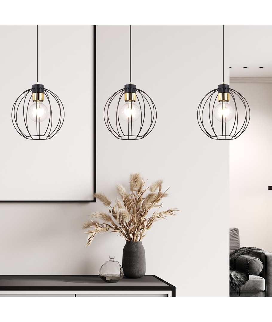 Gi ditt hjem en moderne og sofistikert oppdatering med denne nydelige pendellampen. Med en lekker sort og gull finish, passer den perfekt inn i enhver innredning, enten det er over spisebordet, i stuen eller på kjøkkenet.