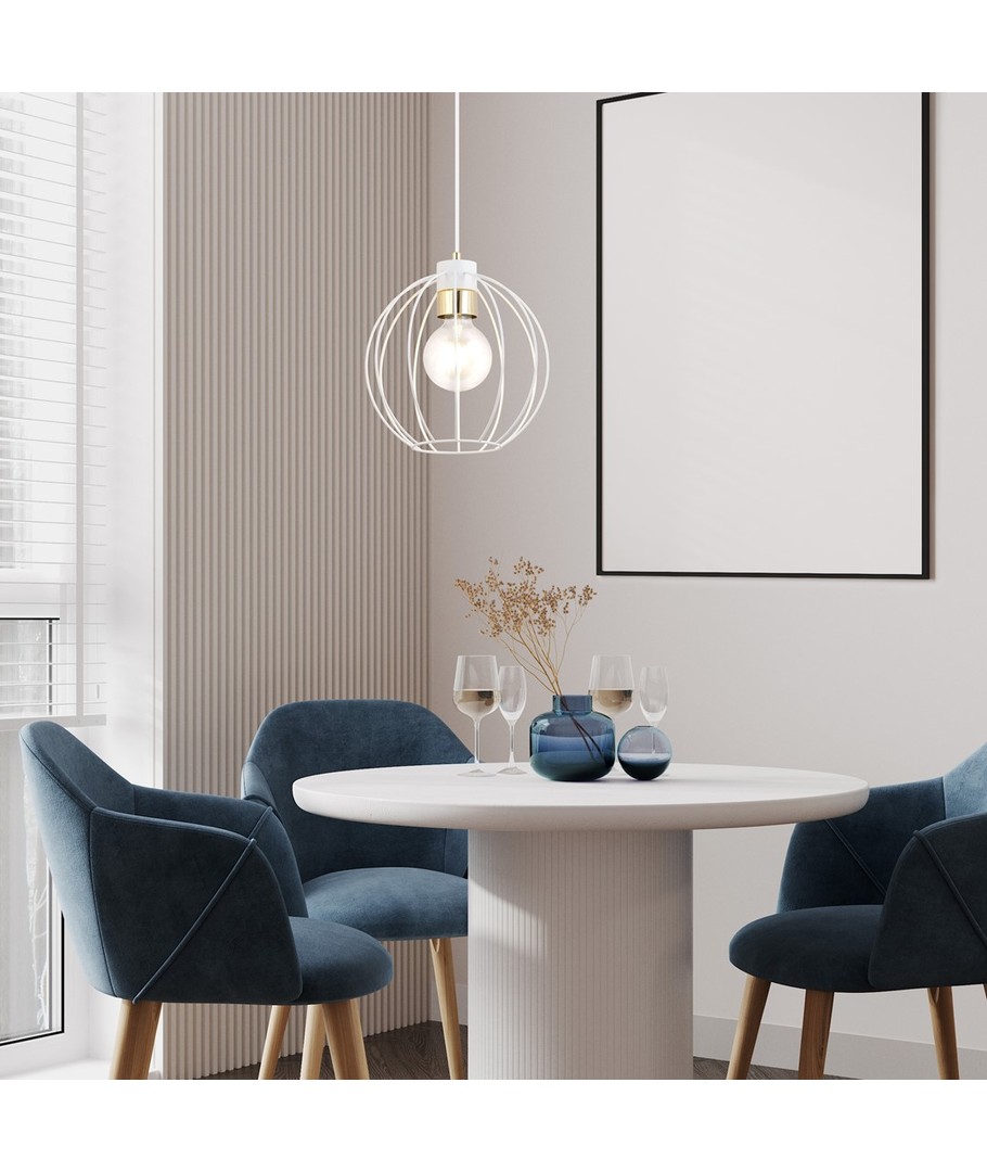 Oppgrader hjemmet ditt med en stilren pendellampe som tilfører et snev av luksus og modernitet. Denne lampen kombinerer hvit og gull i et tidløst design som passer inn i både klassiske og moderne interiører.