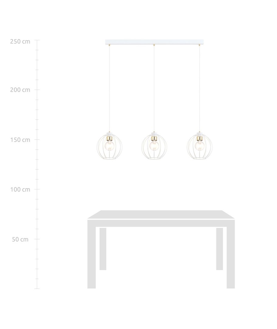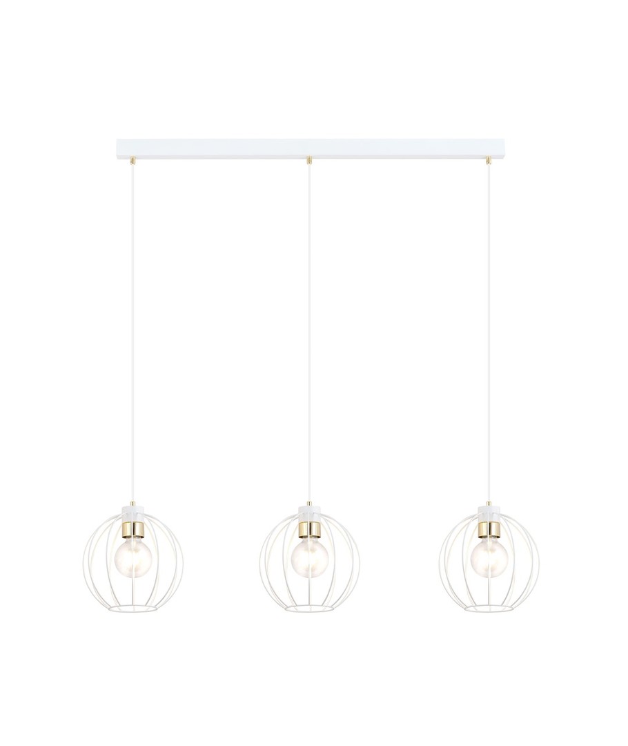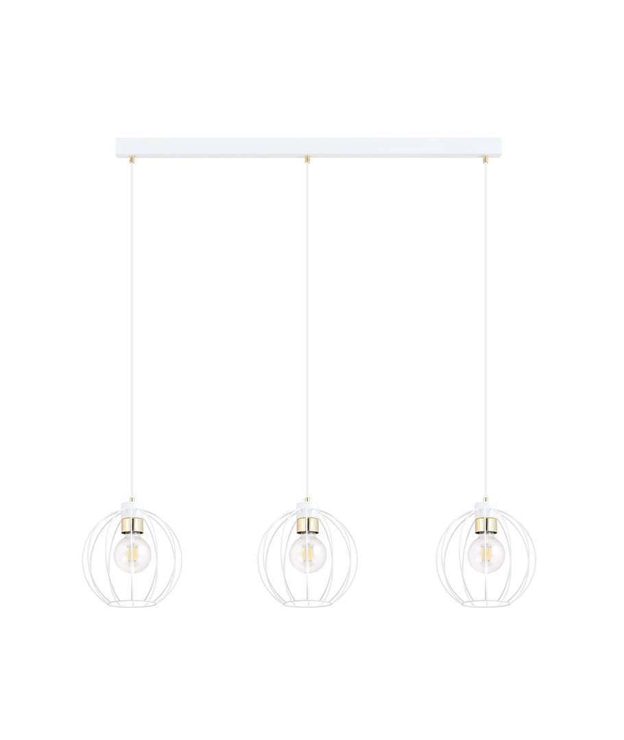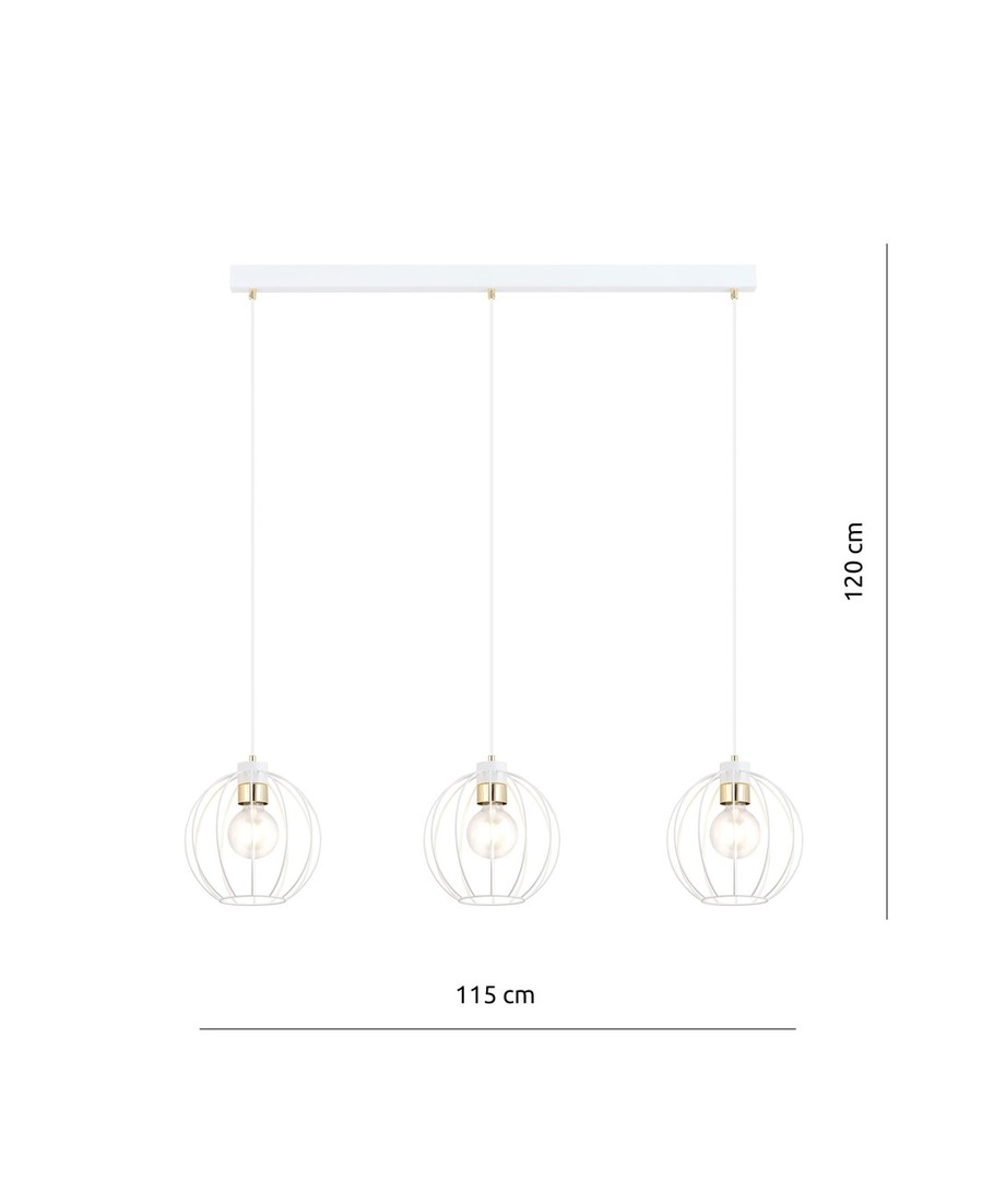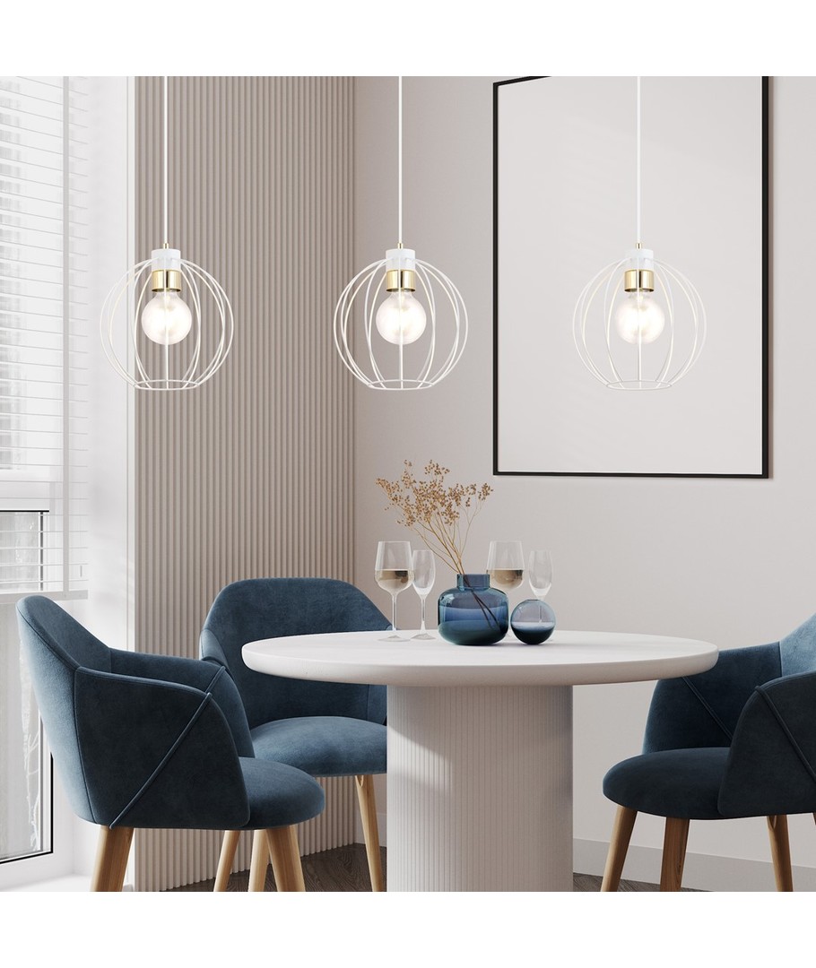 Gino 3 pendellampe i hvit og gull er en moderne lampe som tilfører eleganse til din innredning. Den er ideell for både stuer og loftsmiljøer, hvor den skaper en unik atmosfære. Med justerbare ledninger kan du tilpasse lampens høyde slik at den passer perfekt til rommets behov og sikrer jevn belysning selv i større områder. De store metallskjermene i vakkert design passer inn i de fleste hjem, mens de dekorative gulldetaljene gir et lett og stilfullt uttrykk.