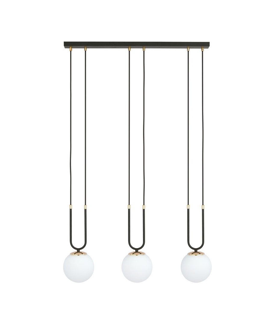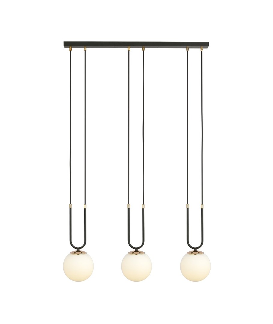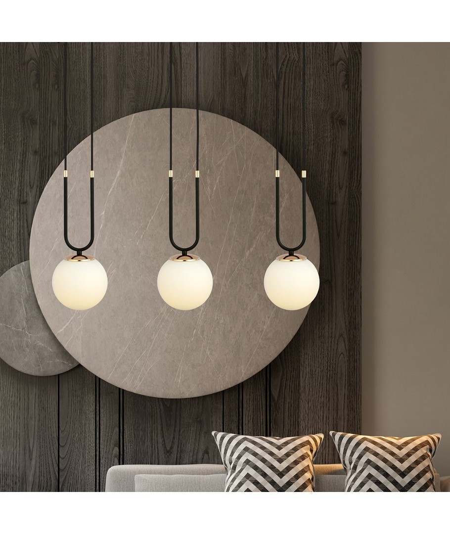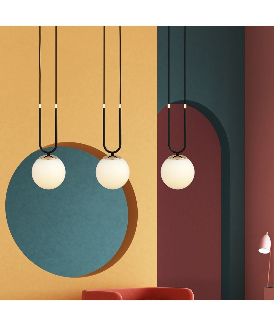 Glam 3 Sort/Opal pendellampe er en del av den motetilpassede GLAM-serien, som bringer glamour og eleganse inn i ditt hjem. Denne lampen er designet for elskere av overdådighet og estetikk, hvor de delikate glasskjermene tilfører en feminin letthet. De gyldne dekorative elementene fremhever lampens unike uttrykk og skaper en levende atmosfære. Kombinert med en stilfull sort fargepalett, er denne pendellampen det perfekte tilskuddet til en moderne innredning.