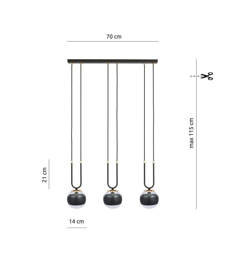 Oppgrader hjemmet ditt med Glam 3 Sort/Stripe pendellampe, som kombinerer moderne design med glamour. Med sitt elegante uttrykk tilfører denne pendellampen et snev av luksus til ethvert rom. Den stilige kombinasjonen av sort pulverlakkert stål og glasskupler gir en sublim balanse mellom robusthet og skjørhet. Denne serien er ideell for dem som ønsker en følelse av eksklusivitet og skjønnhet, mens de gullfargede detaljene fremhever lampens glans og forvandler den til et midtpunkt i ditt interiør.