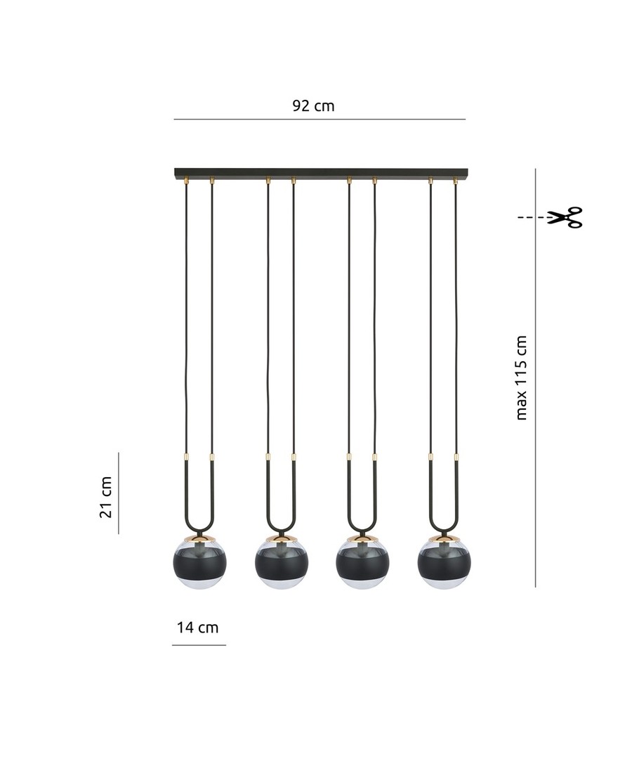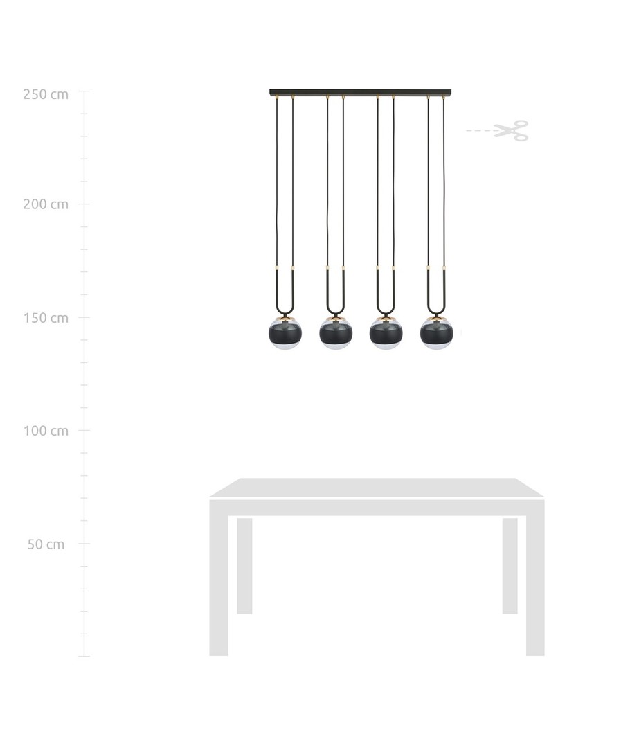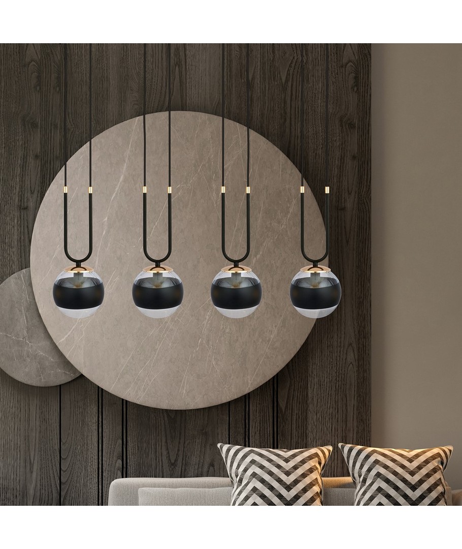 Glam 4 Sort/Stribe pendellampe er en del av den glamorøse GLAM-serien, som passer perfekt for deg som verdsetter luksus og eleganse. Designet kombinerer en moderne estetikk med tidløse dekorative elementer. De delikate glasskjermene tilfører en letthet og eleganse til lampen, mens de gyldne detaljene skaper liv og lys i rommet. Med justerbare høyder er denne lampen ikke bare vakker, men også utrolig funksjonell, noe som gjør den ideell for ethvert stilbevisst hjem.