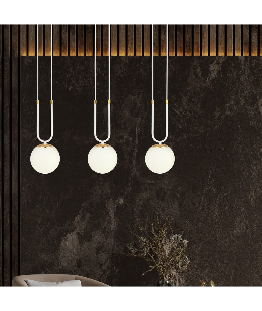 Forvandle atmosfæren i hjemmet ditt med den elegante Glam 3 Hvit/Opal pendellampen. Denne stilige lampen gir både et moderne preg og en myk, innbydende glød som passer perfekt inn i ethvert moderne interiør.