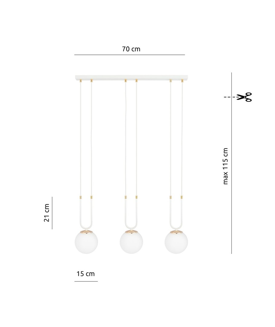 Glam 3 Hvit/Opal pendellampen er en del av den sofistikerte GLAM-serien, som bringer glamour og eleganse direkte inn i hjemmet ditt. Denne stilige pendellampen skaper en ekstraordinær atmosfære og fungerer som et fantastisk blikkfang i ethvert rom. Designet for de som elsker luksus og skjønnhet, kombinerer den skarpe hvitheten med elegante gullfargede detaljer, noe som gir et raffinert uttrykk. De delikate glasskjermene tilfører en letthet og ynde til lampen, mens dens justerbare høyde sikrer at den kan tilpasses ulike rom og behov.