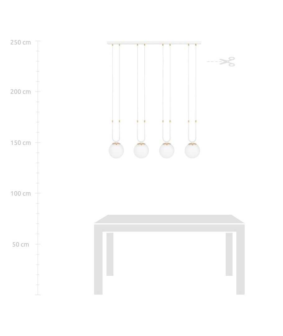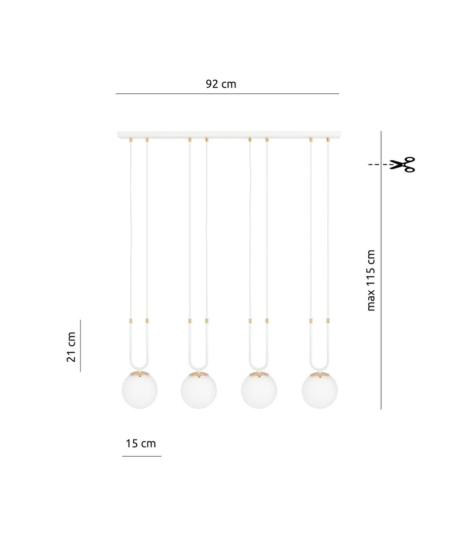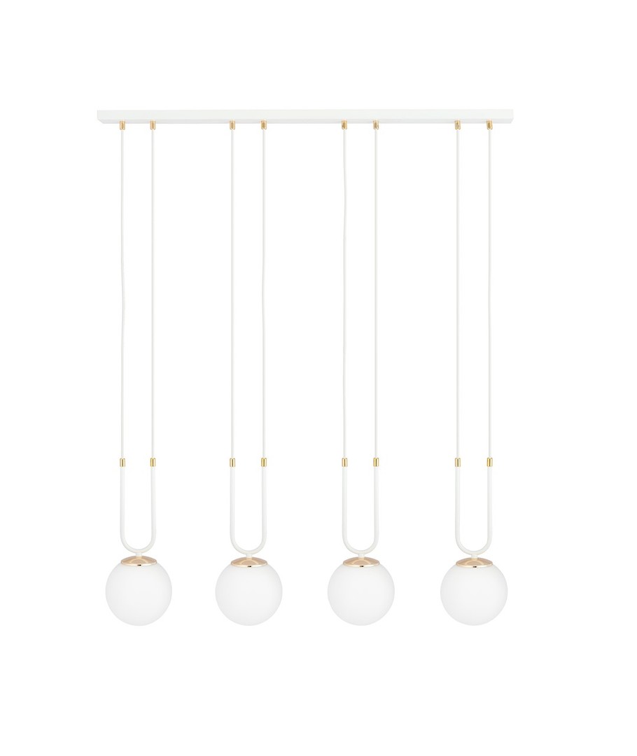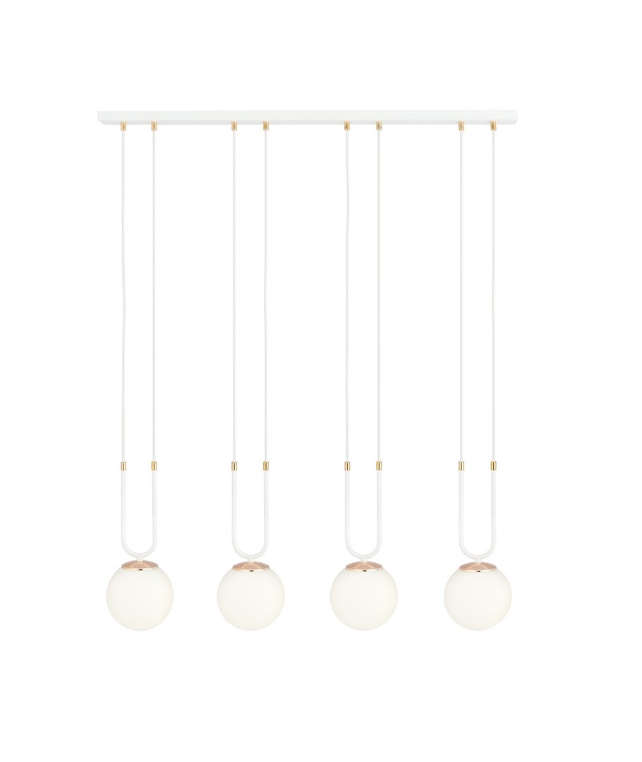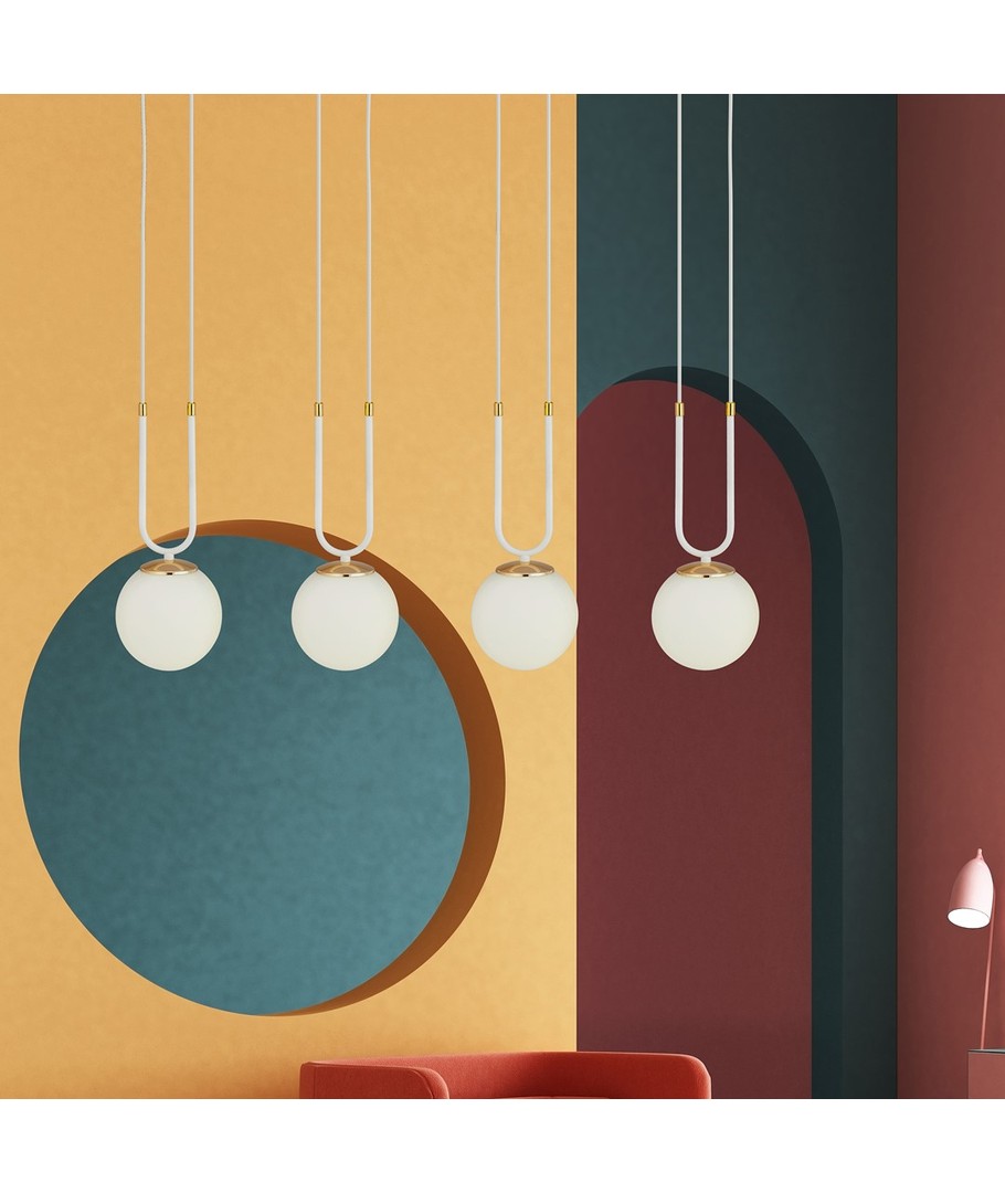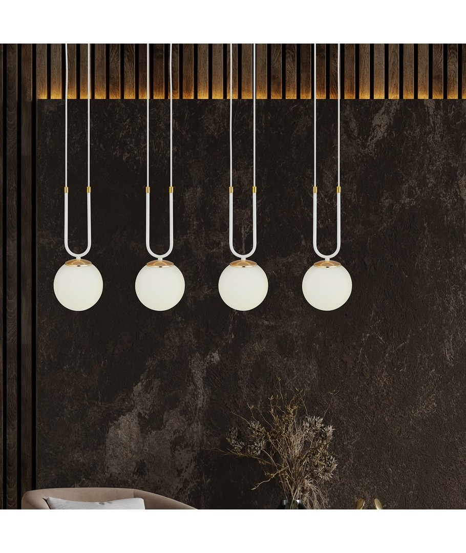 Opplev moderne eleganse med Glam 4 Hvit/Opal pendellampe - en perfekt kombinasjon av enkelhet og stil for ditt bomiljø.